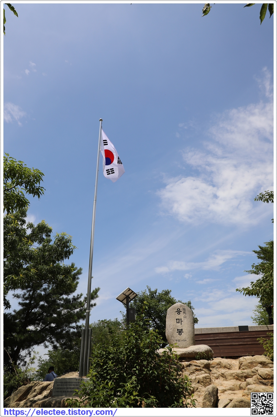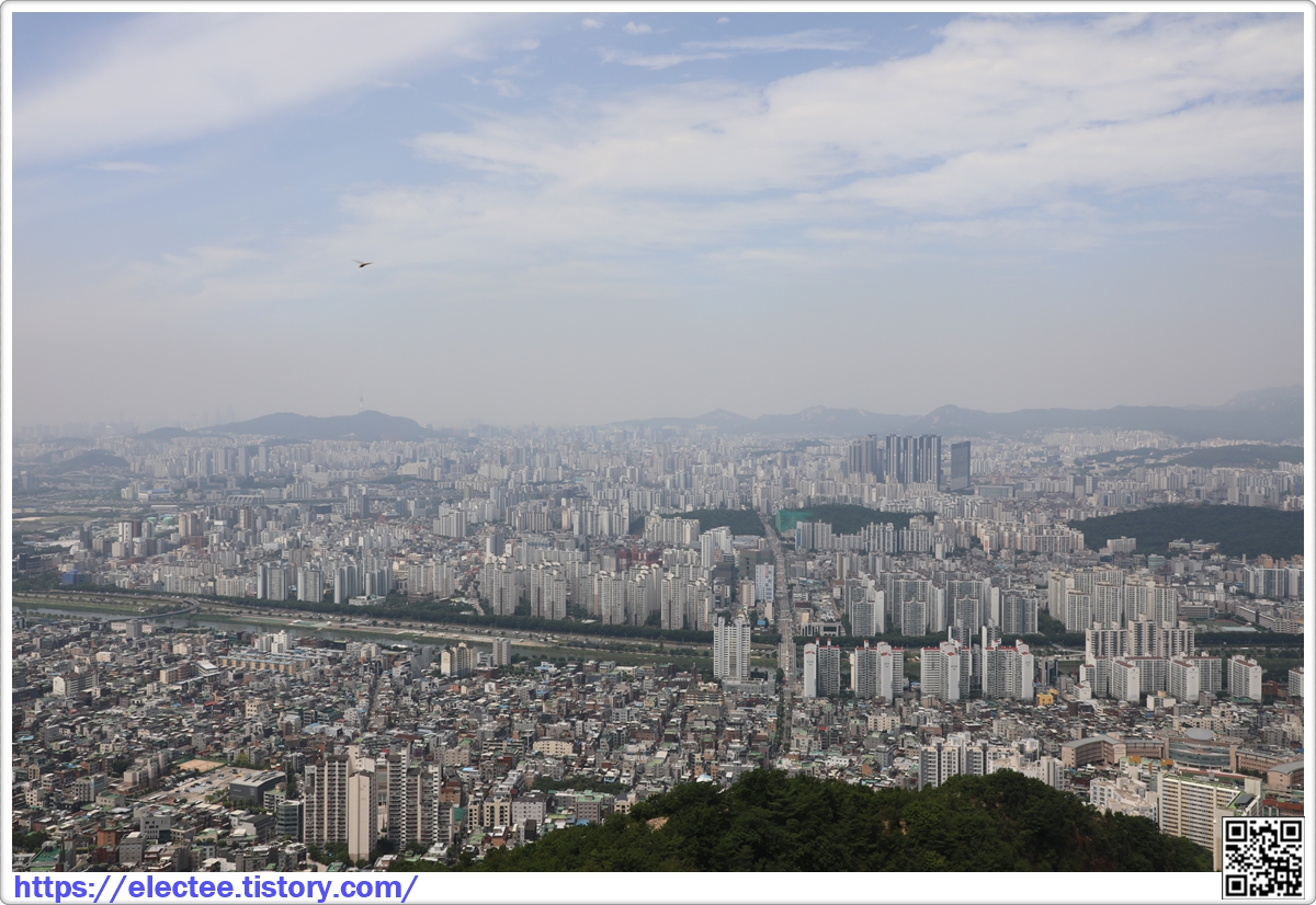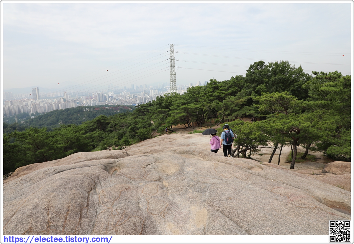 40분 정도의 등산로를 오르면 한강과 서울 시내가 한눈에 보이는 전망이 일품이다.