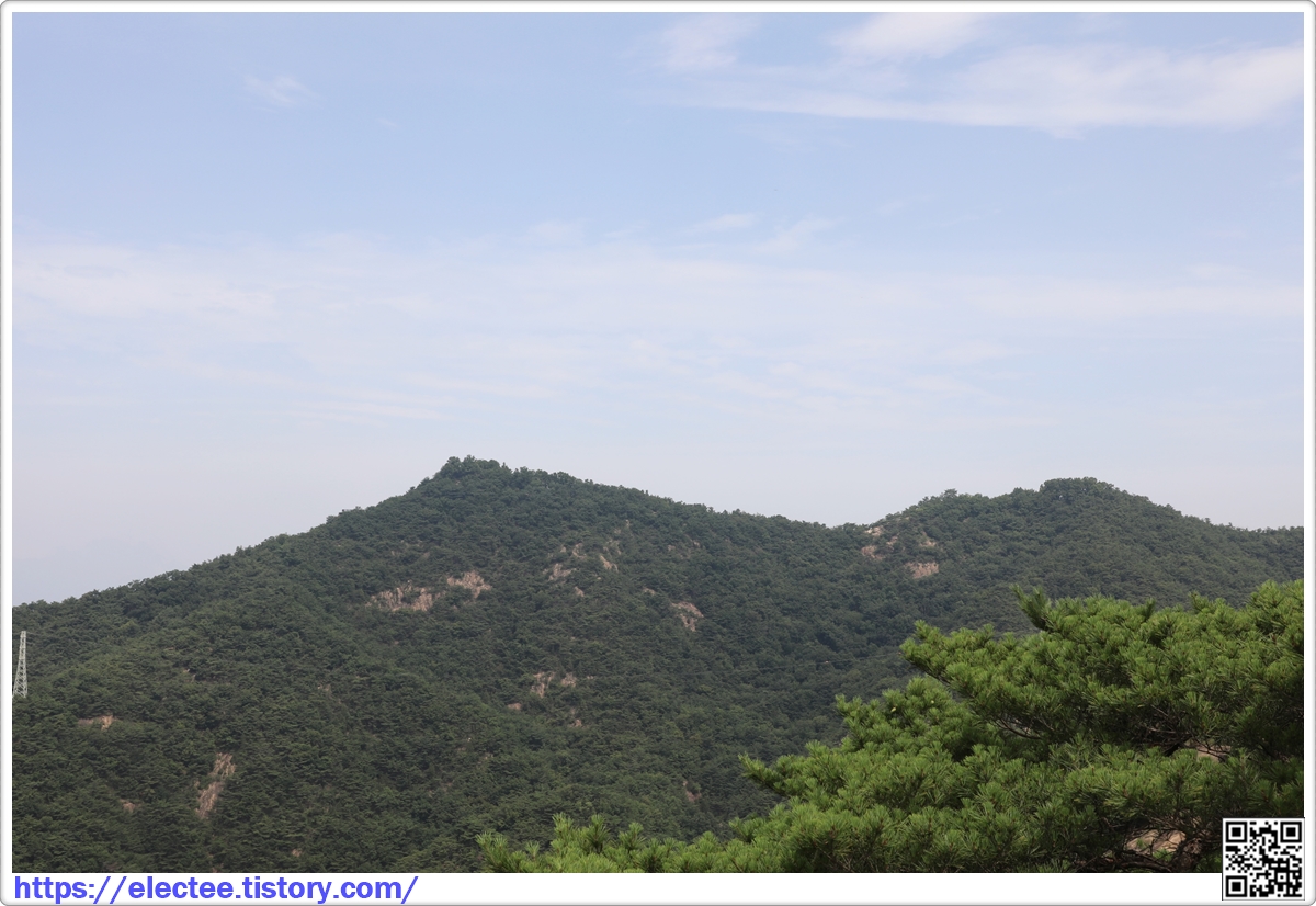 하산하게 될 용마산 정상은 왼쪽 봉우리다.