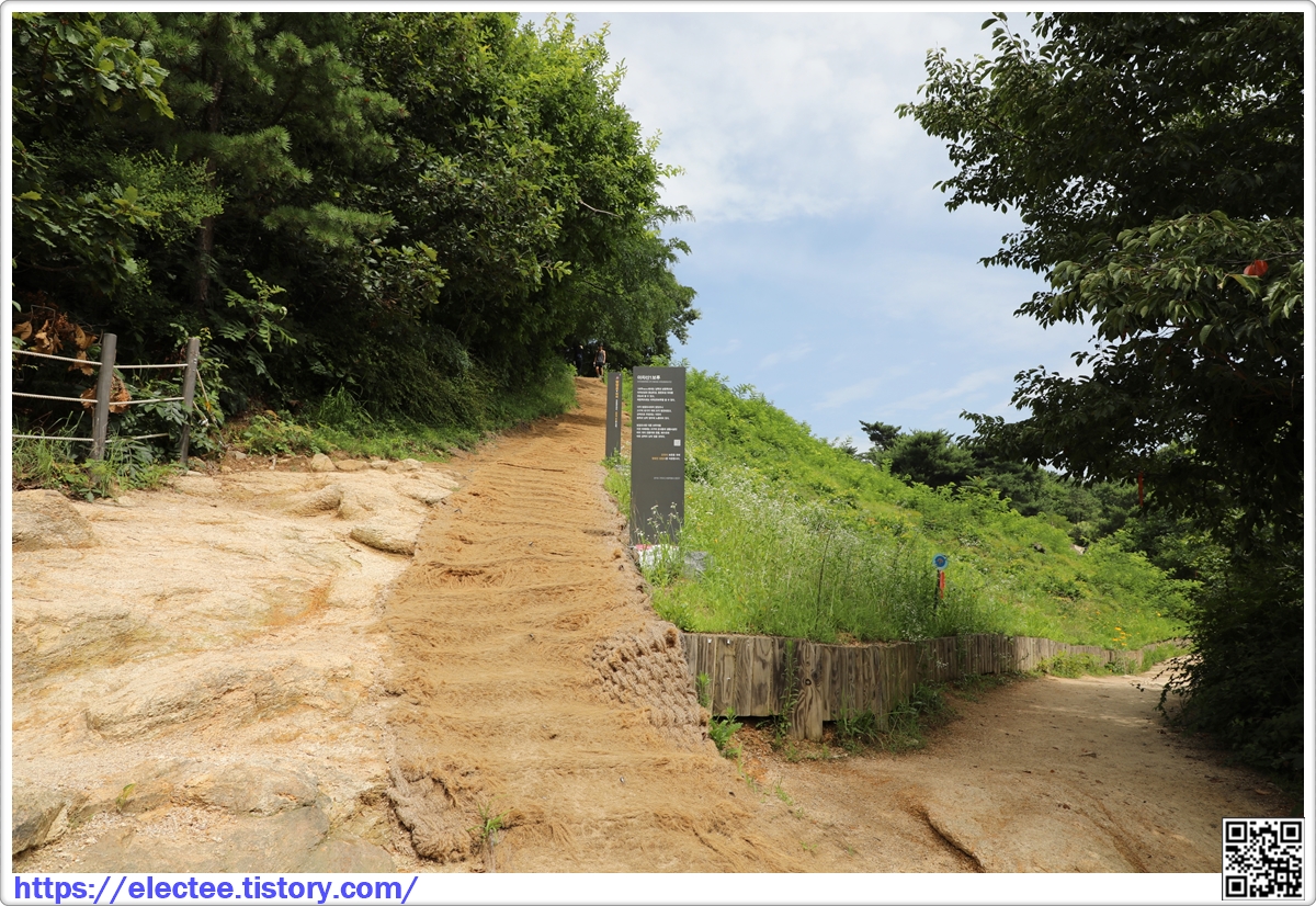 아차산장성 길은 고운 흙을 다져서 만들어 1,500여 년이 지난 지금도 등산로로 이용되고 있으며,