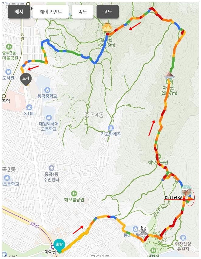 아차산은 주변의 용마봉 해발 348m, 망우현 해발 282m를 함께 부르는 표현이었지만,