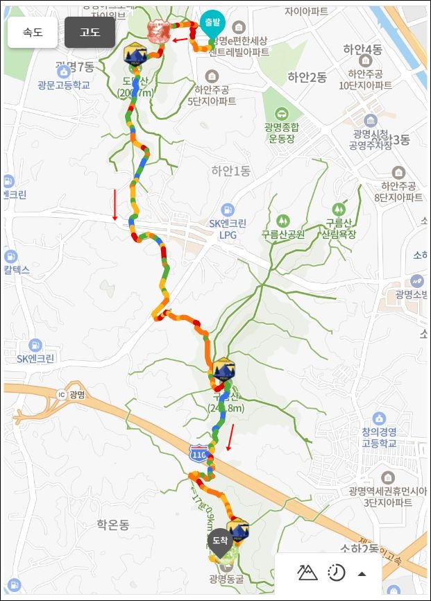 여름 산행은 너무 높거나 길게 타면 체력만 고갈되니 광명의 작은 산이라도 짧게 탈 생각에
