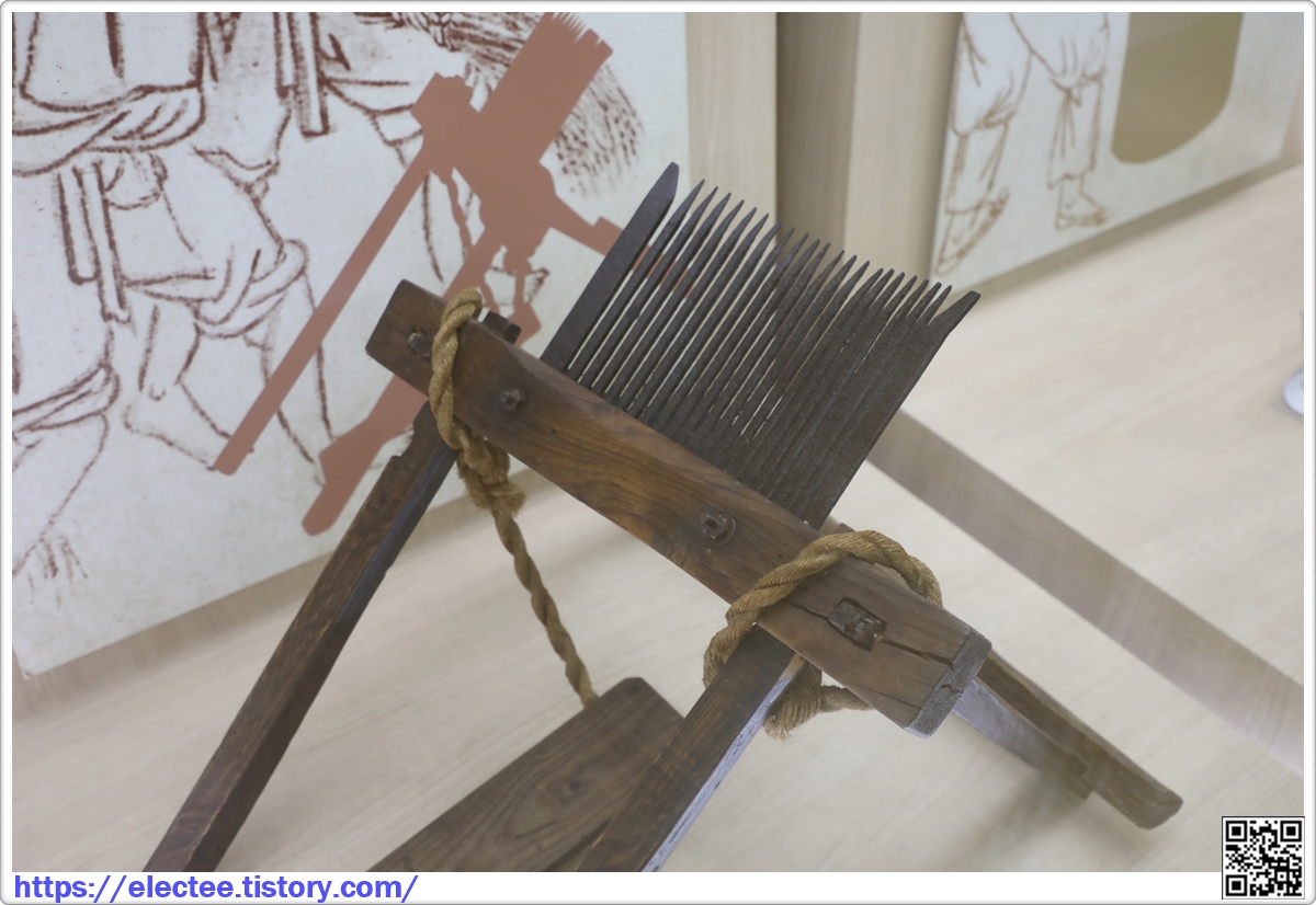 수확한 벼의 알곡을 훑는 탈곡도구이다.