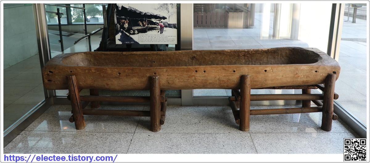 입구에 들어서면 현관과 중문 사이에 거대한 여물통이 전시되었다.