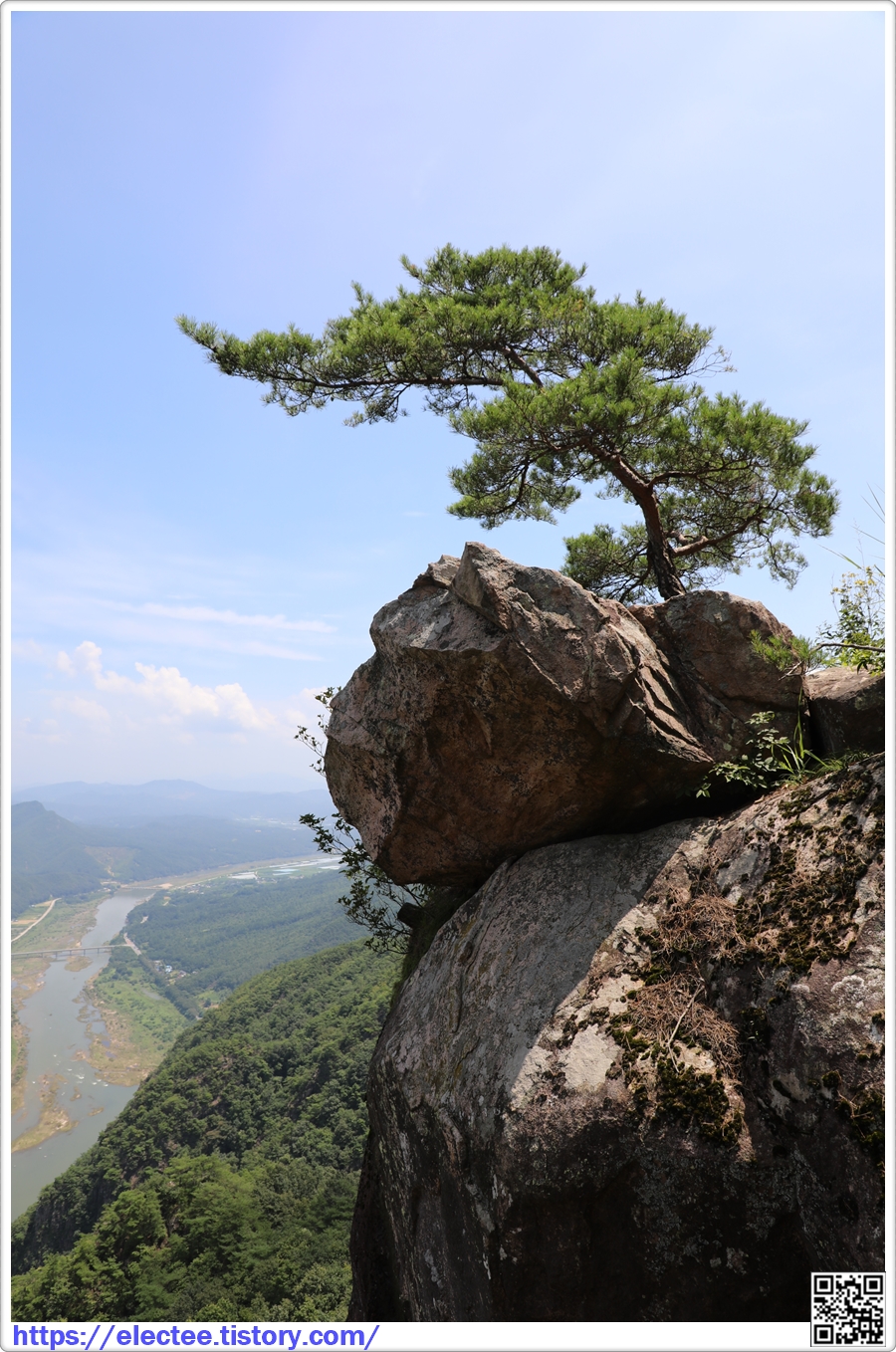바위 아래로 금강이 유유히 흐른다.