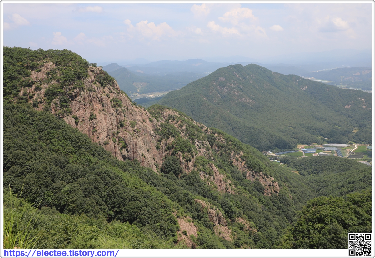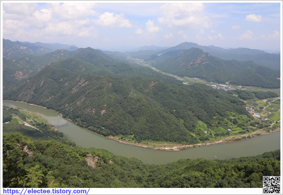 정상부 북쪽 발아래를 내려다보면 금강이 제원면의 산하를 휘저으며 흐르는 장관도 함께 펼쳐지는