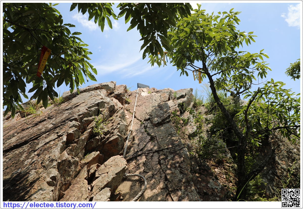 갈기산 정상은 암봉이라 안전을 위해 로프가 설치되었다.