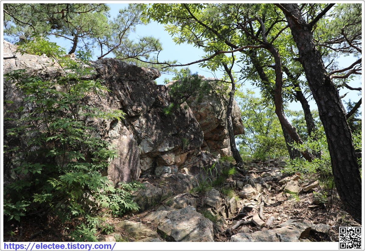 암릉지대가 많지만 소나무길과 번갈아 등산로가 이어지며,