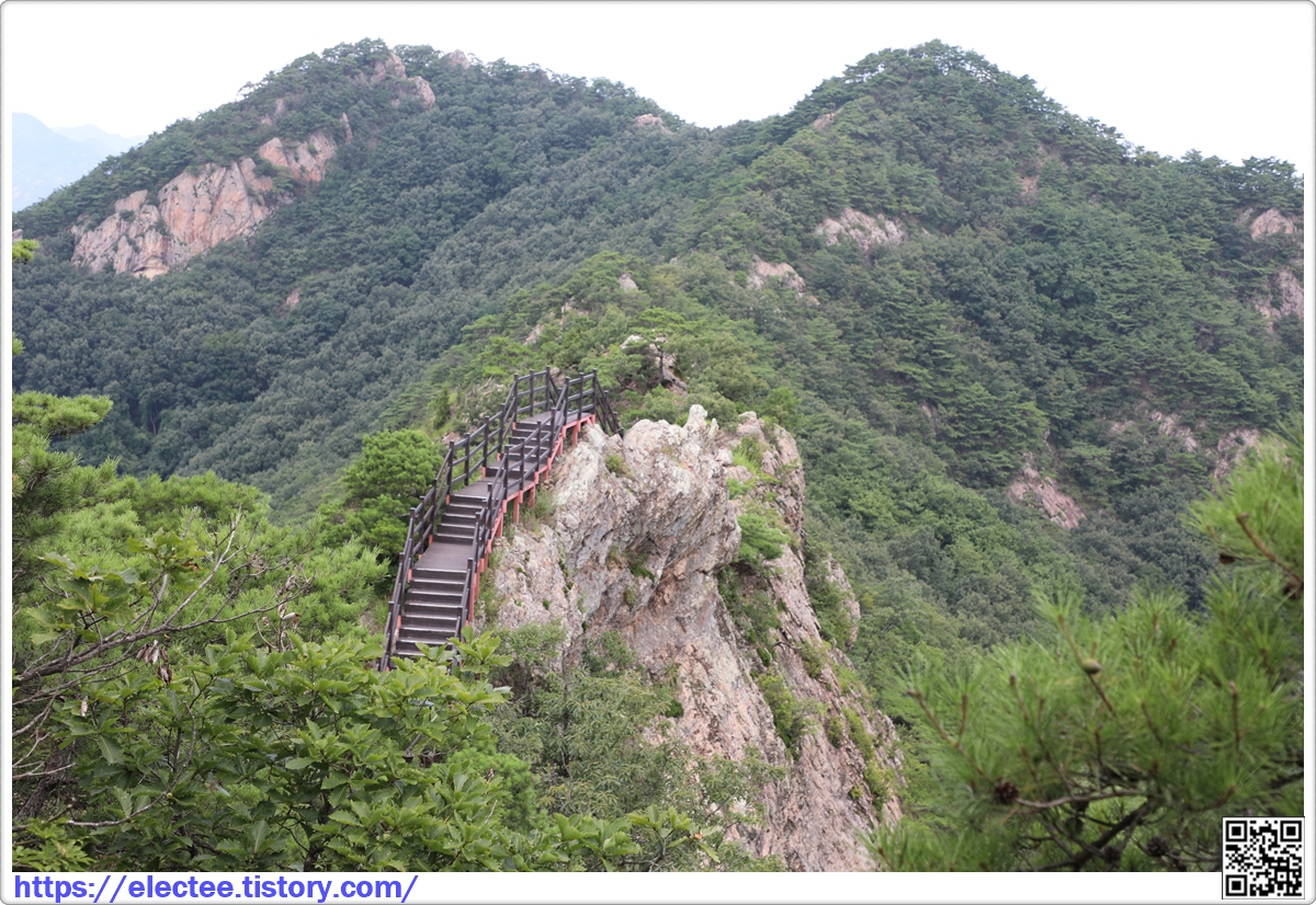 멀리서 잡은 나무데크 구간의 암릉