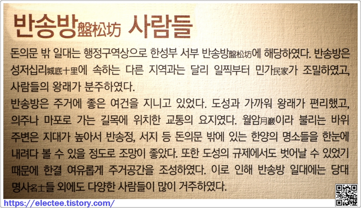 이중 반송방은 이 일대에 반송盤松이 있어 붙은 이름으로, 돈의문 밖 서지西池 주변에 있던 정자의 이름도