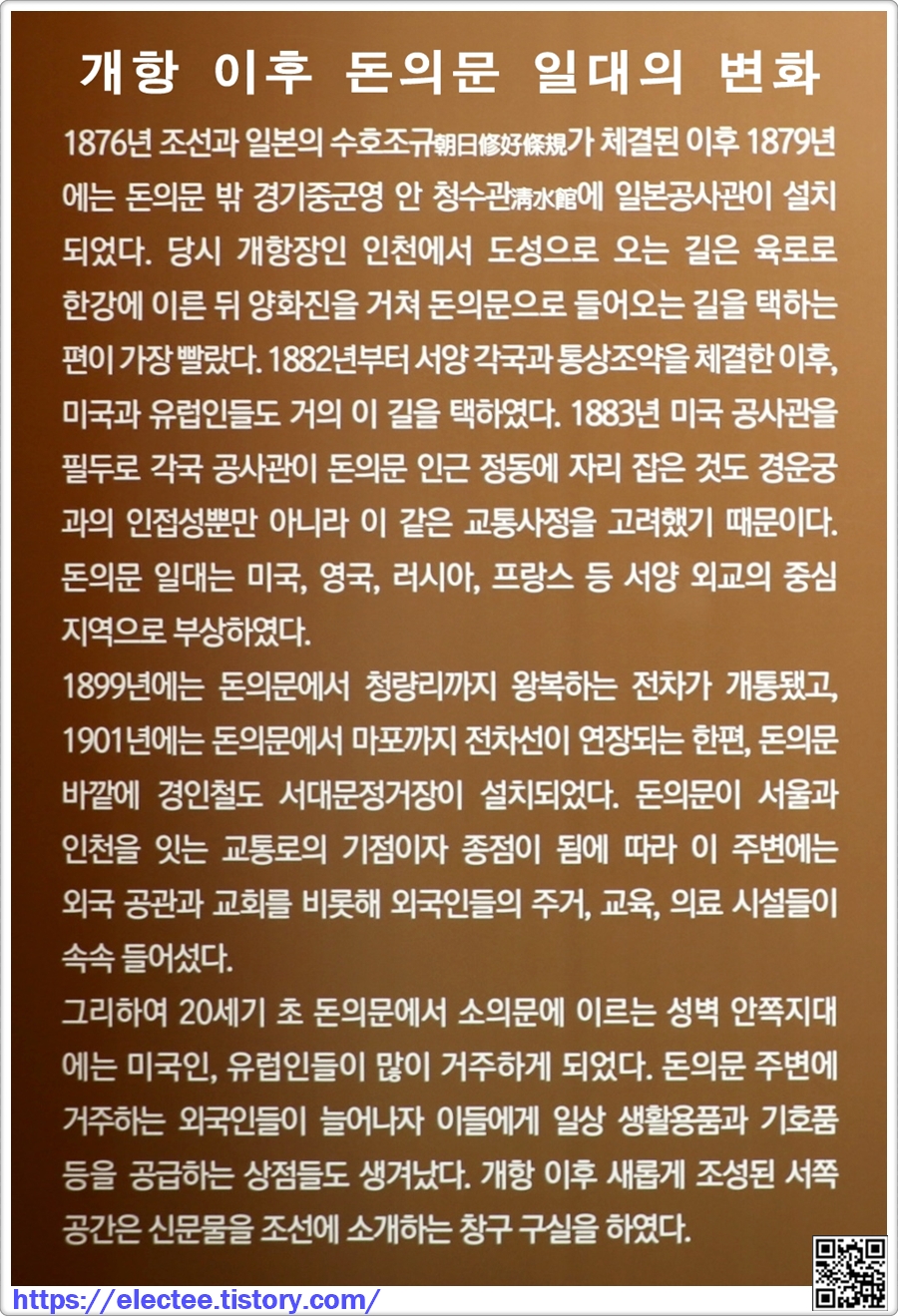 돈의문 주변 지역은 안으로는 한성부 서부 여경방餘慶坊, 인달방仁達坊, 적선방積善坊 등이,