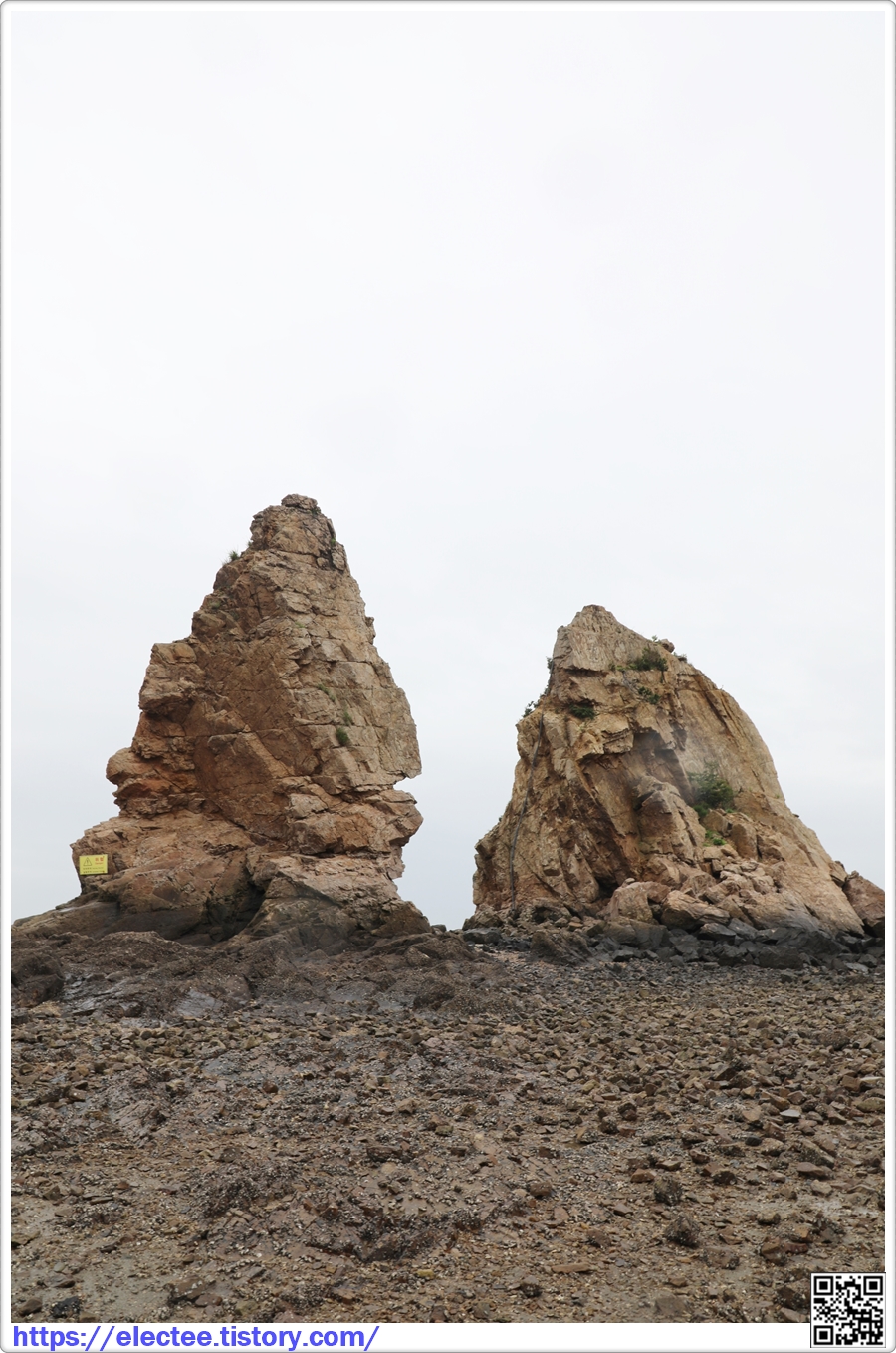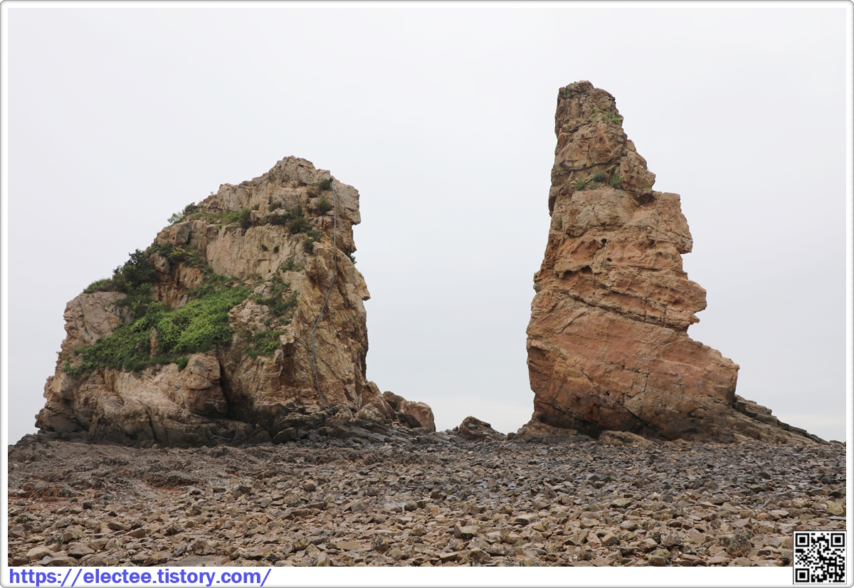 한때 거대했을 몇 개의 매바위는 바닷물과 바람에 풍화되며 주변에 자갈을 흩뿌렸다.