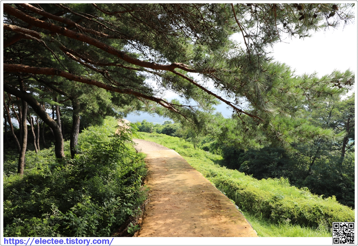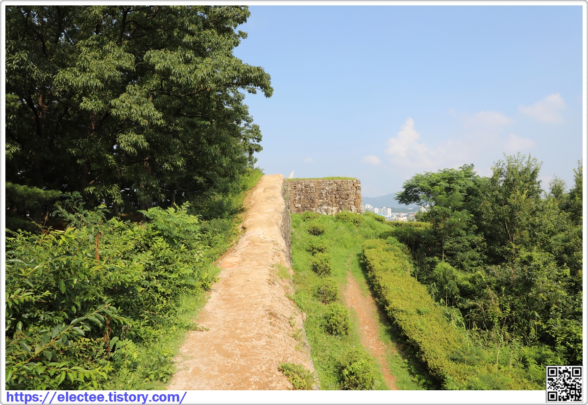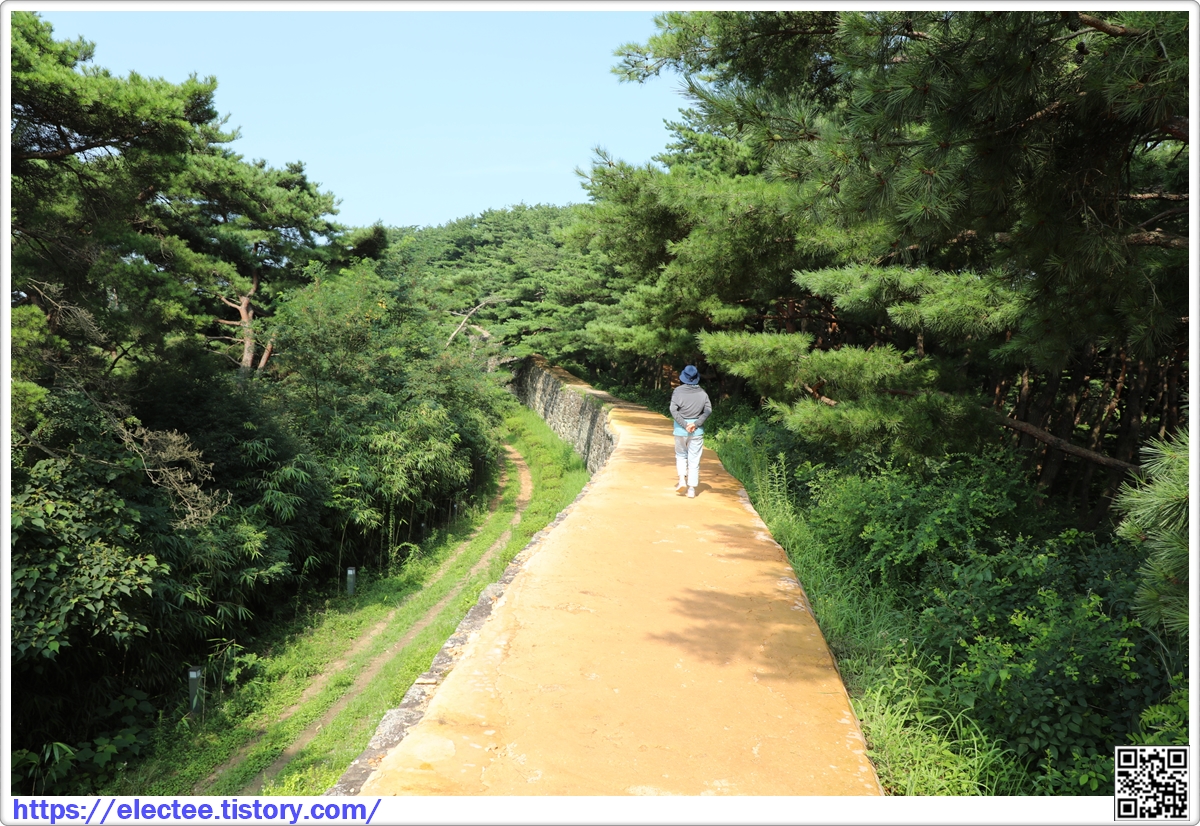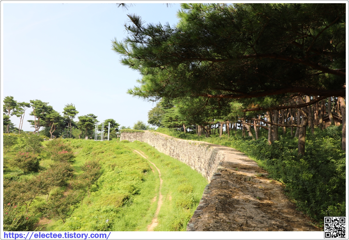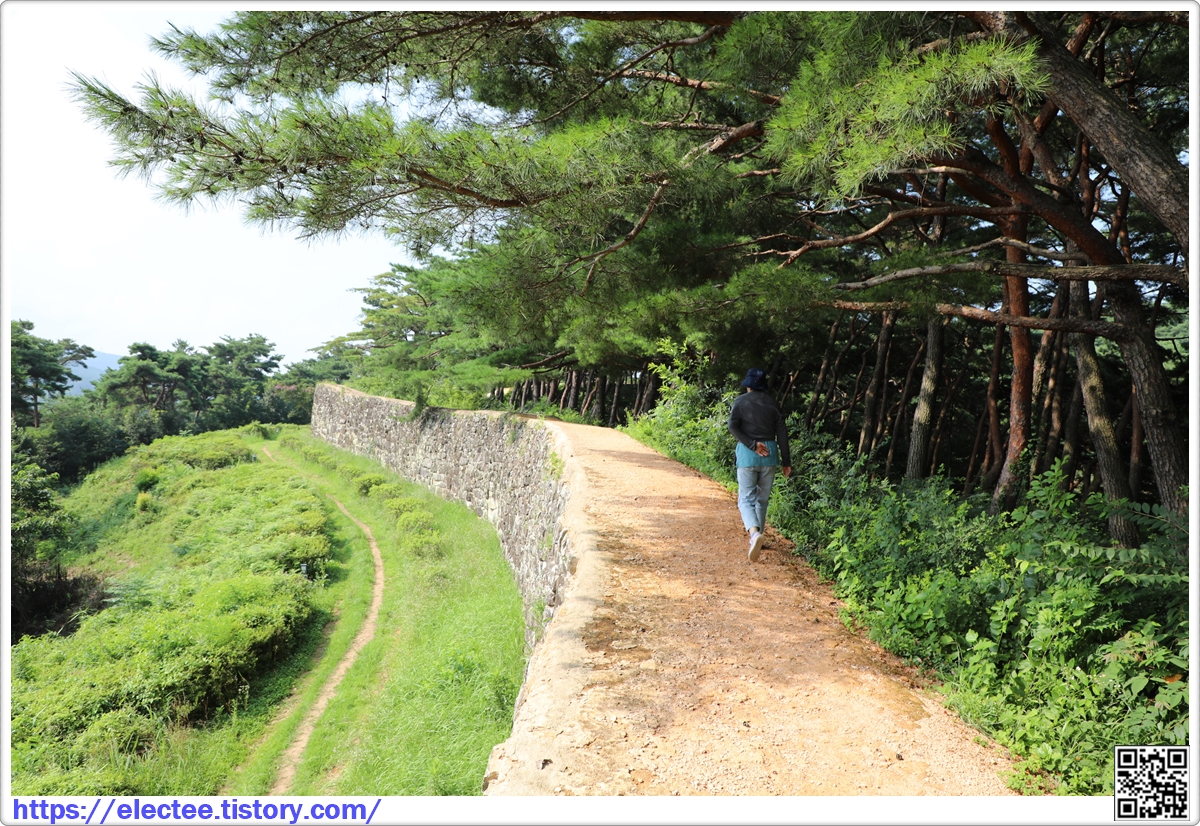 잘 자란 소나무가 가지를 뻗어 성벽 위를 지나가니 그늘이 져 걷기 좋다.