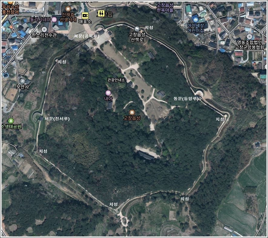 그중 고창은 성은 가장 작으나 세 개의 성문이 옹성으로 둘러싸인 데다 야산을 끼고돌아 가장 아름답다.