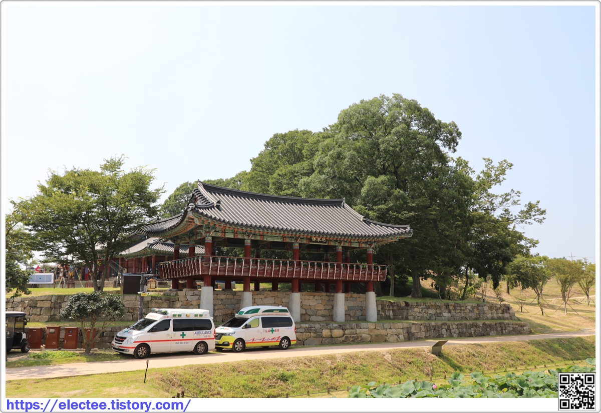 사두봉 앞 읍취루 밑에는 응급차가 두 배 대기 중이다.