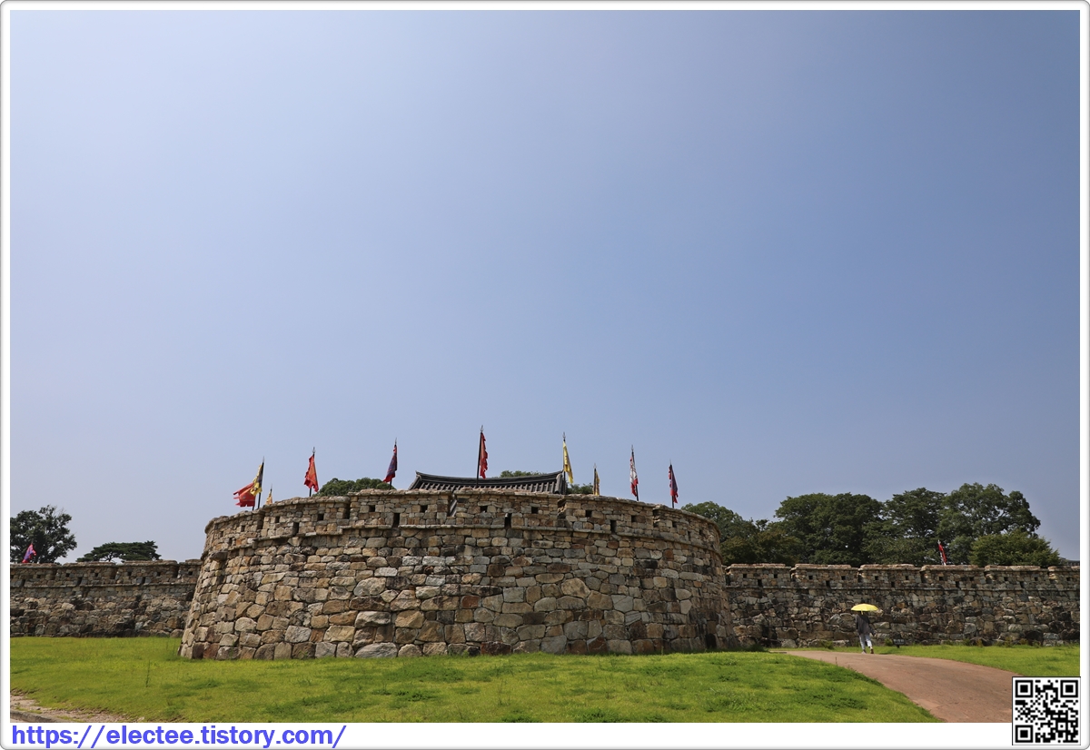 옹성엔 이렇게 양쪽으로 여장을 설치해 방어와 공격이 유리하다.