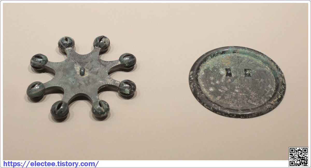 의기로는 기하학무늬 청동거울을 비롯하여 팔주령, 간두령, 쌍두령 등 청동방울이 있으며