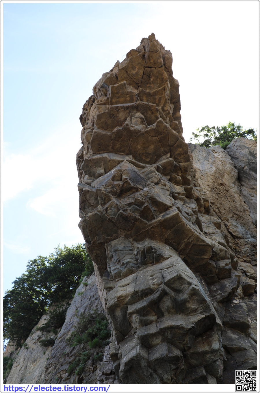 암반의 선형을 보면 수직으로 융기되었겠단 생각이 든다.