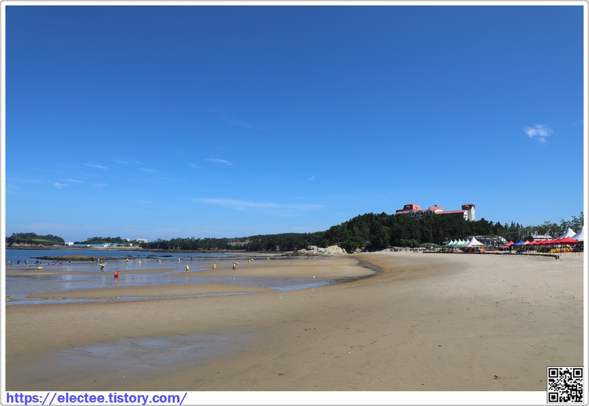 서해안 해수욕장 대부분이 그렇듯 이곳도 조수간만의 차가 크다.