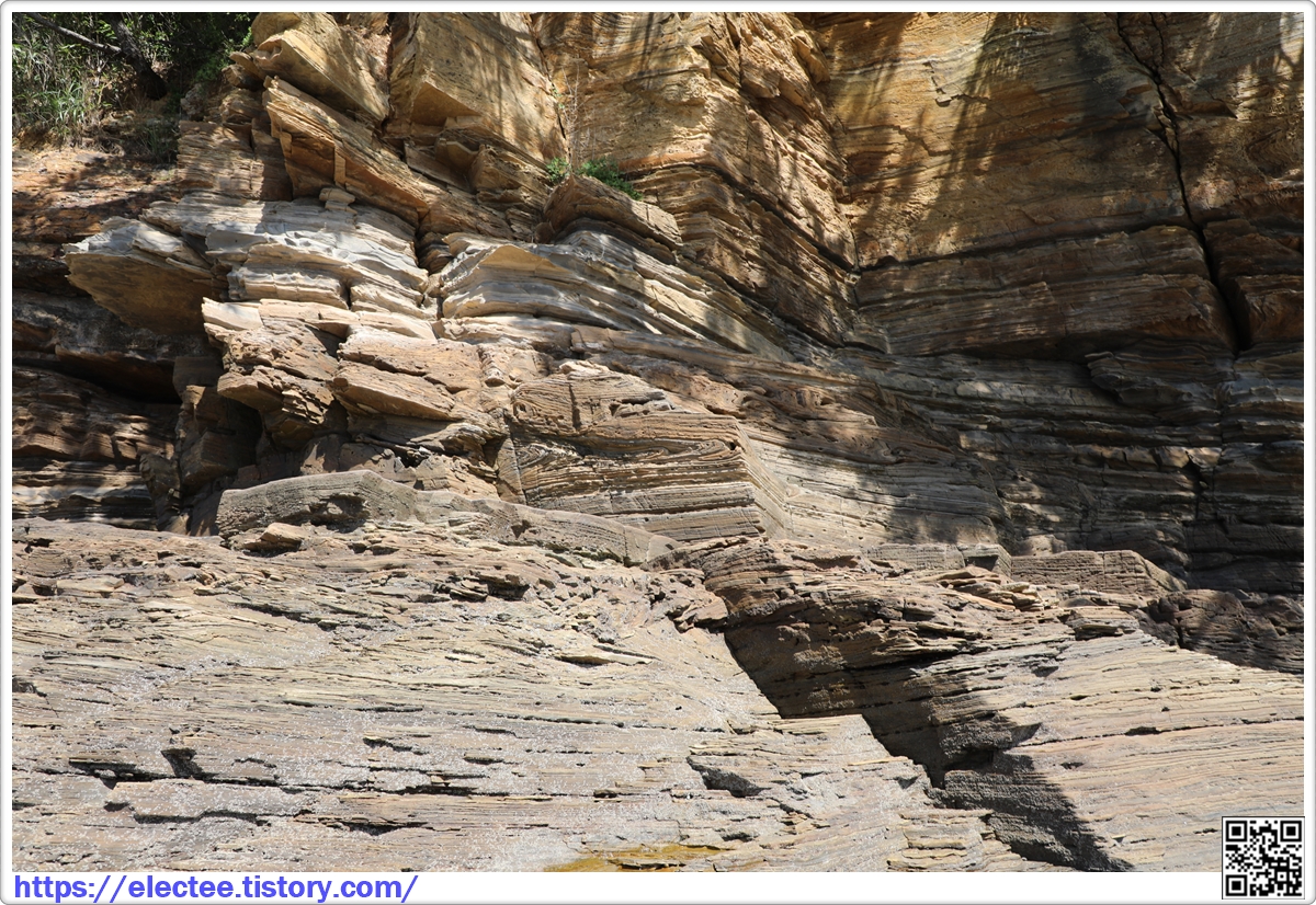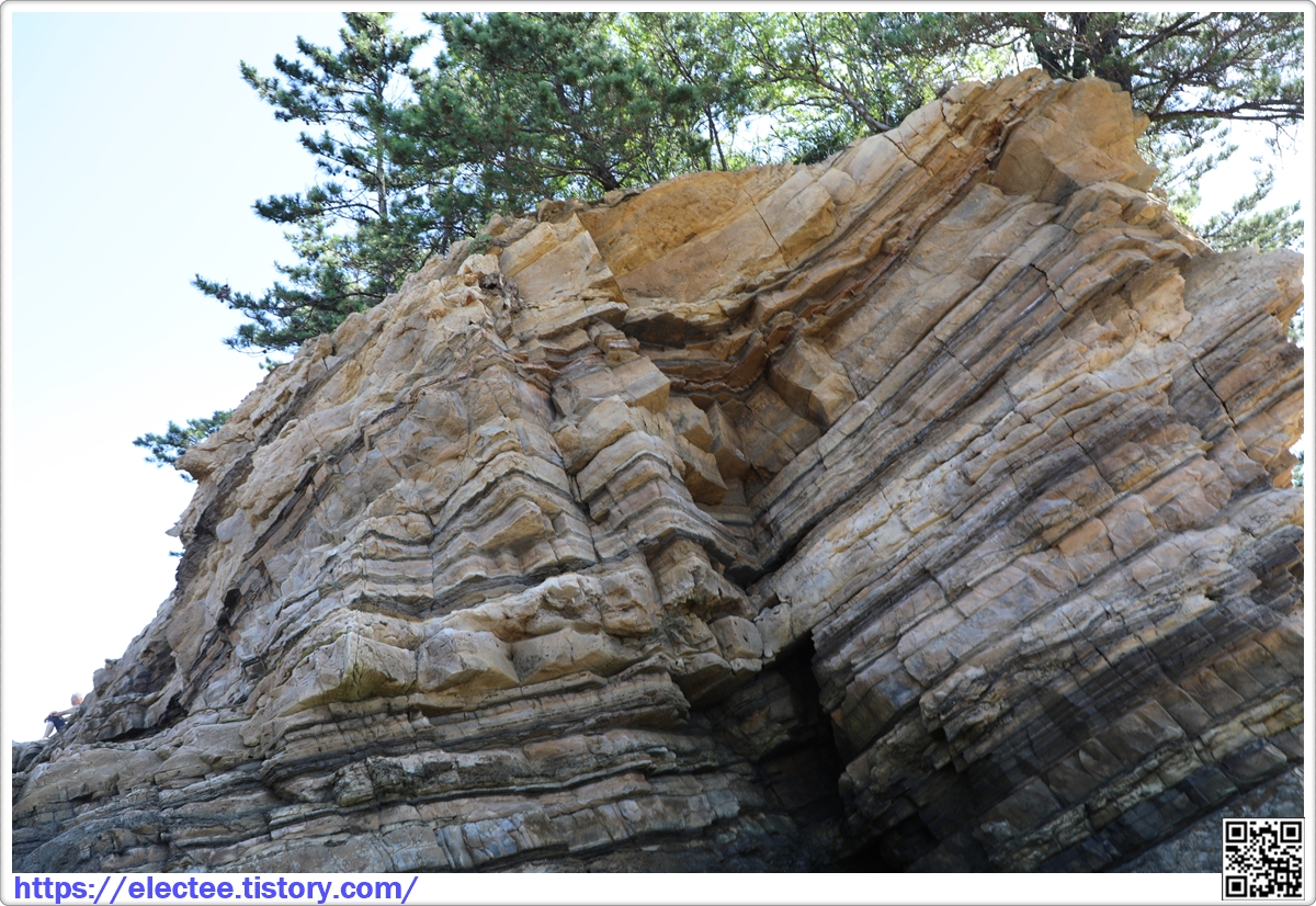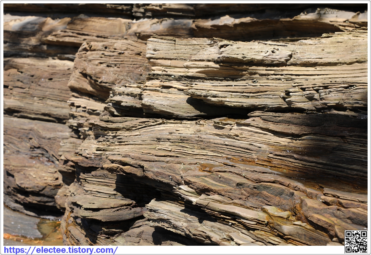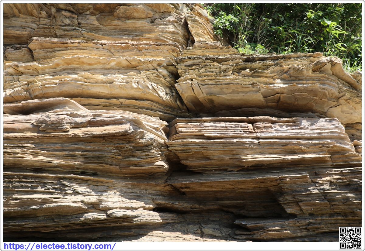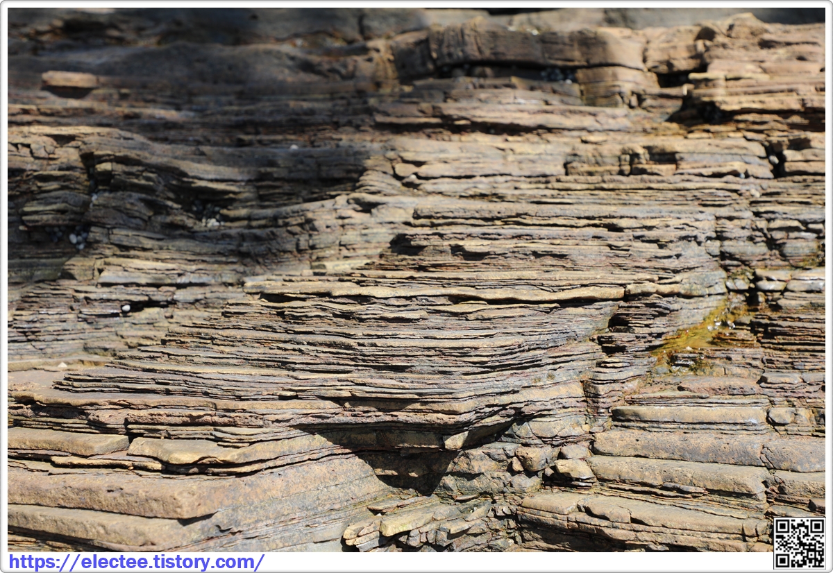 햇빛에 드러난 암반도 자세히 보면 여러 층으로 되어 있다.