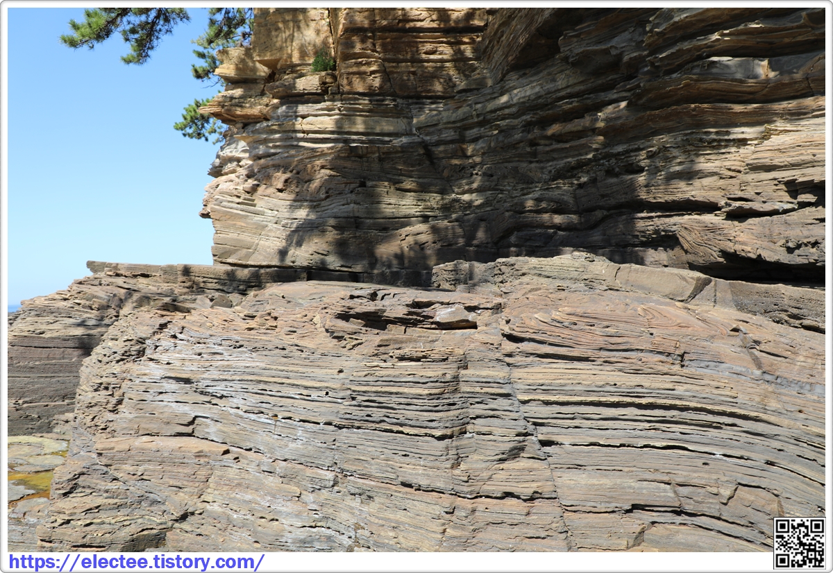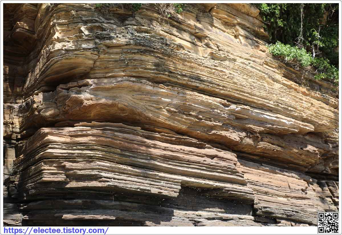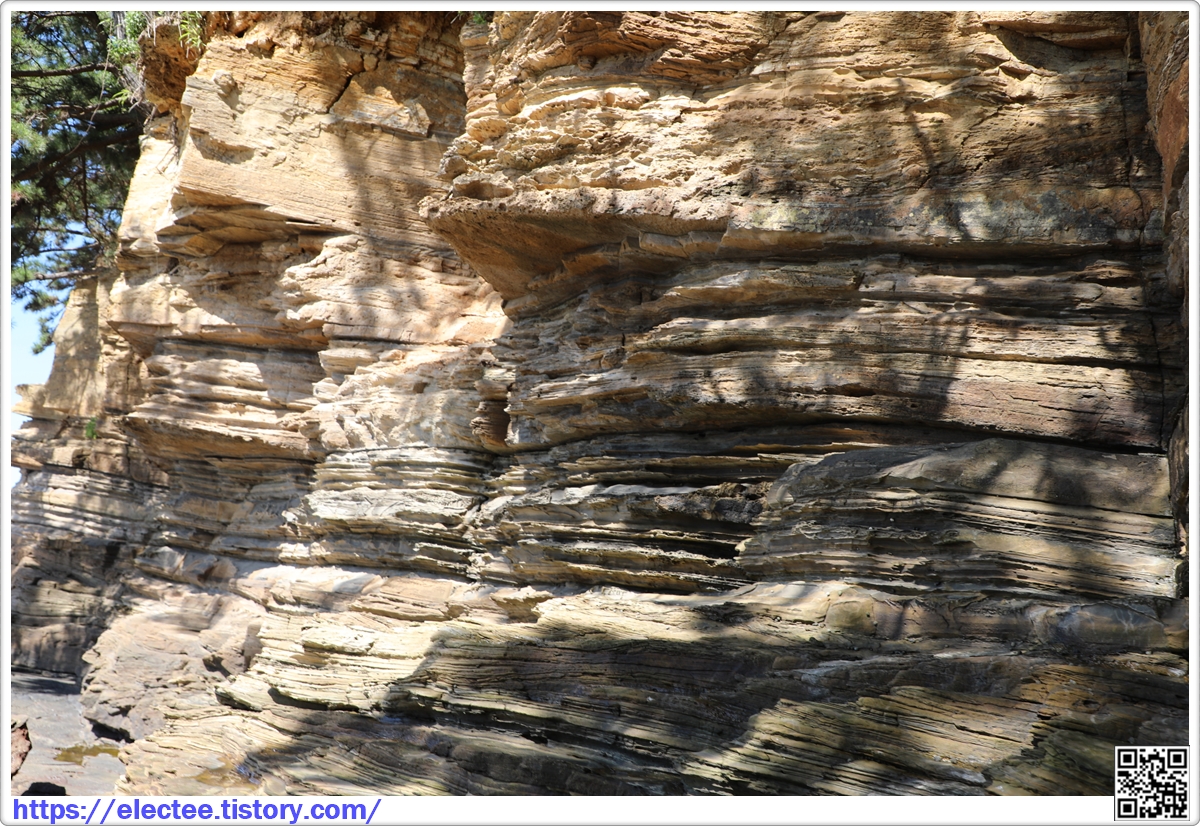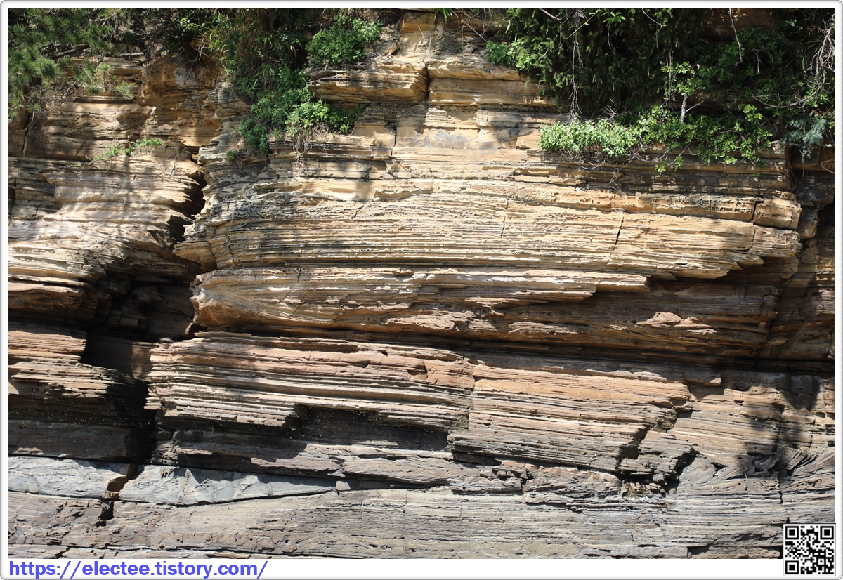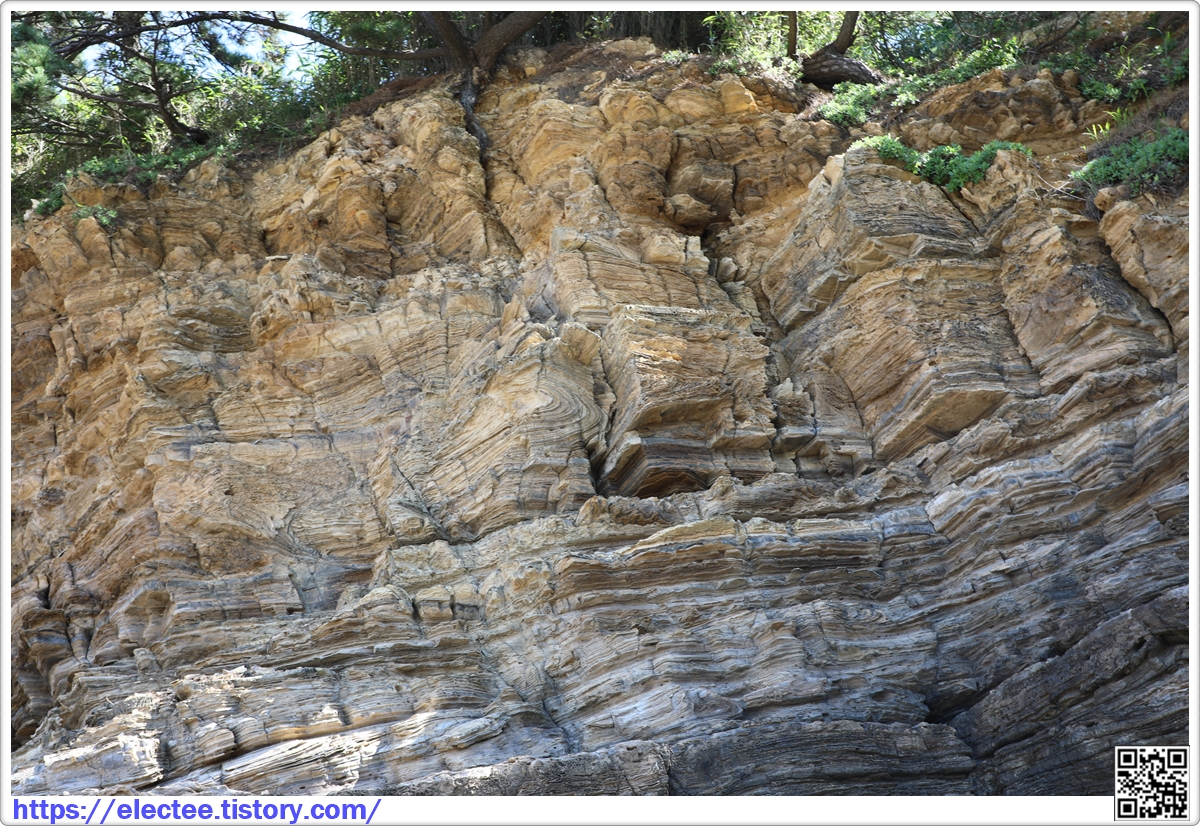 햇빛에 드러난 암반도 자세히 보면 여러 층으로 되어 있다.