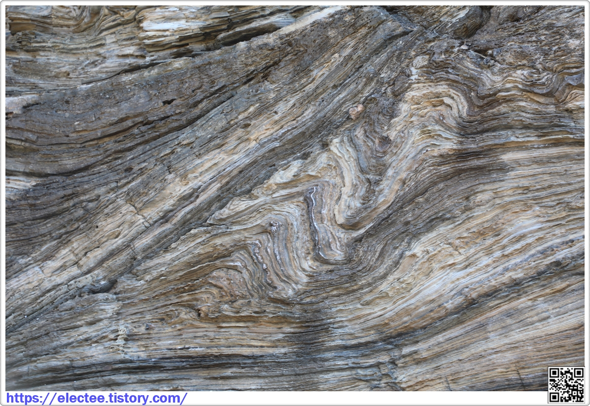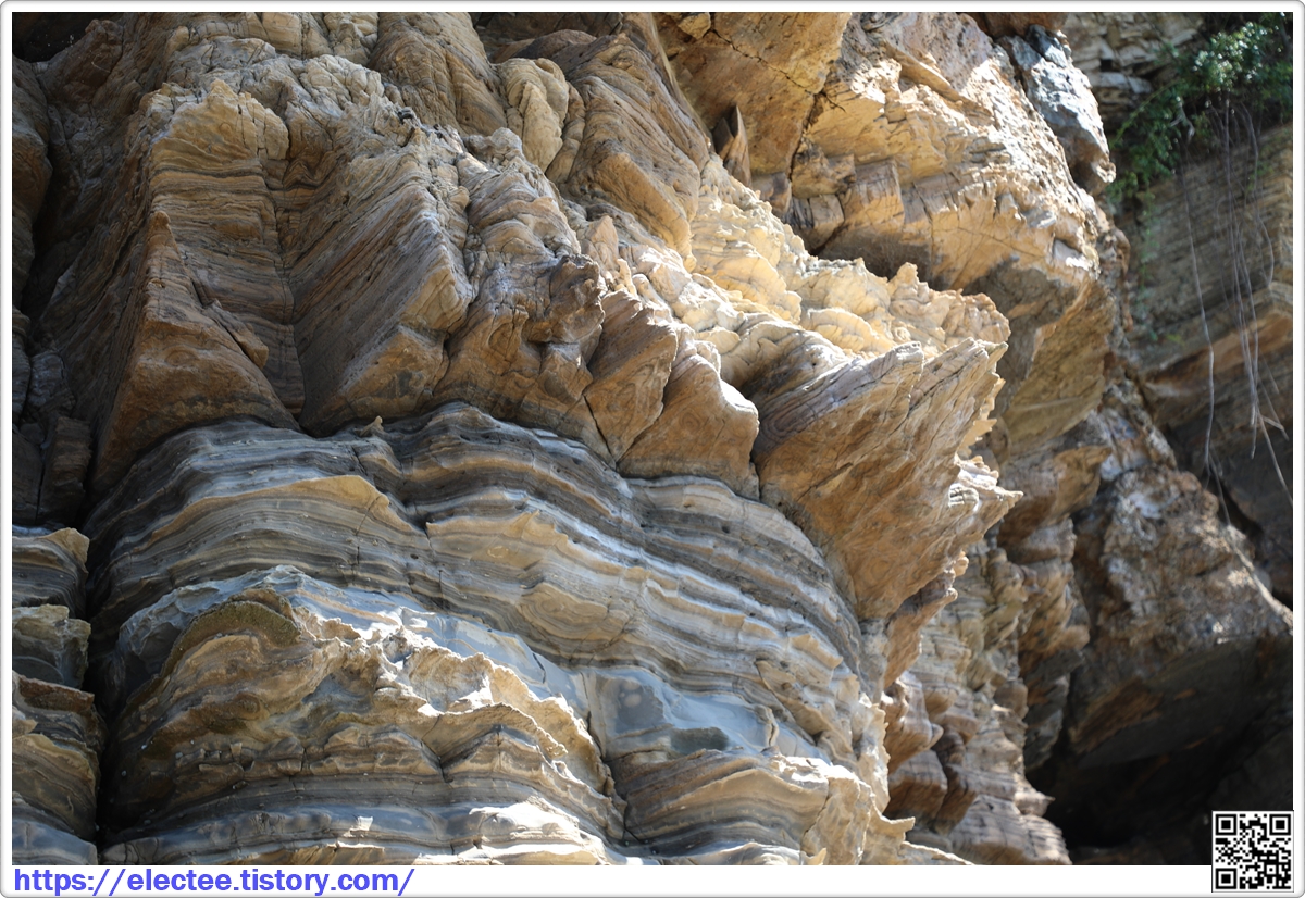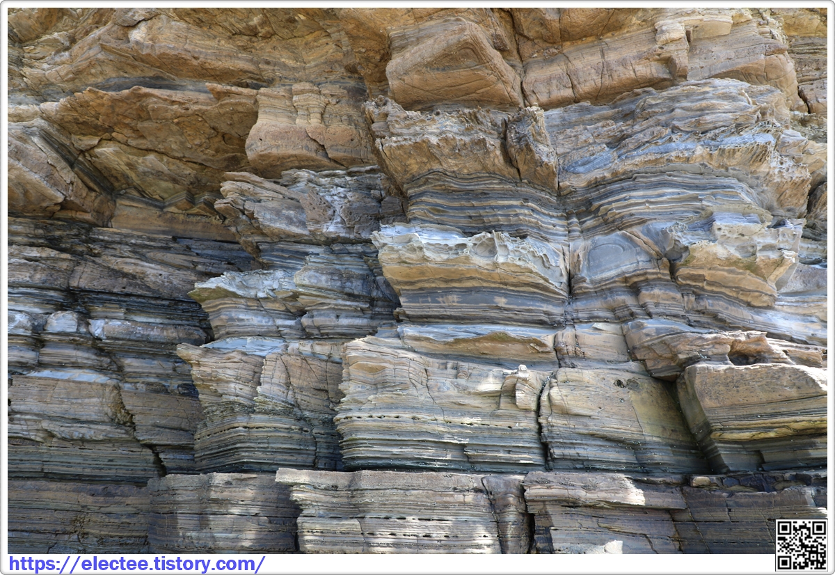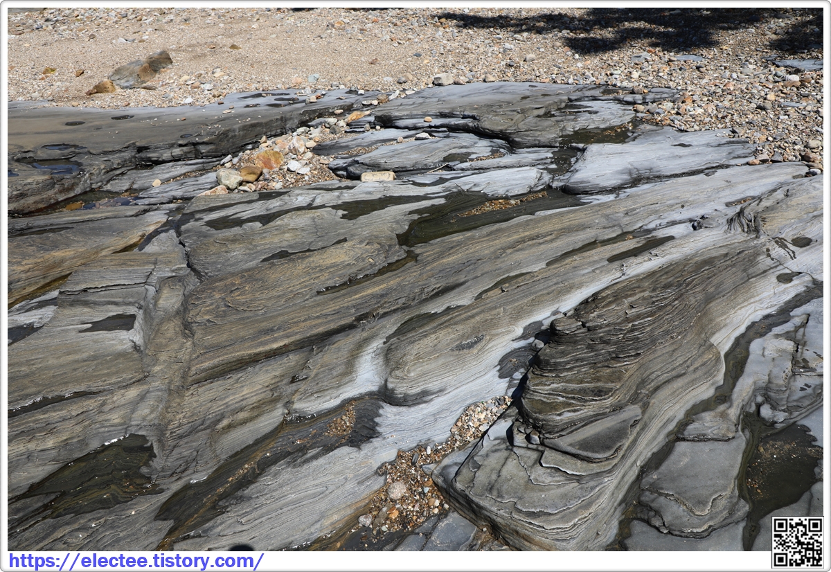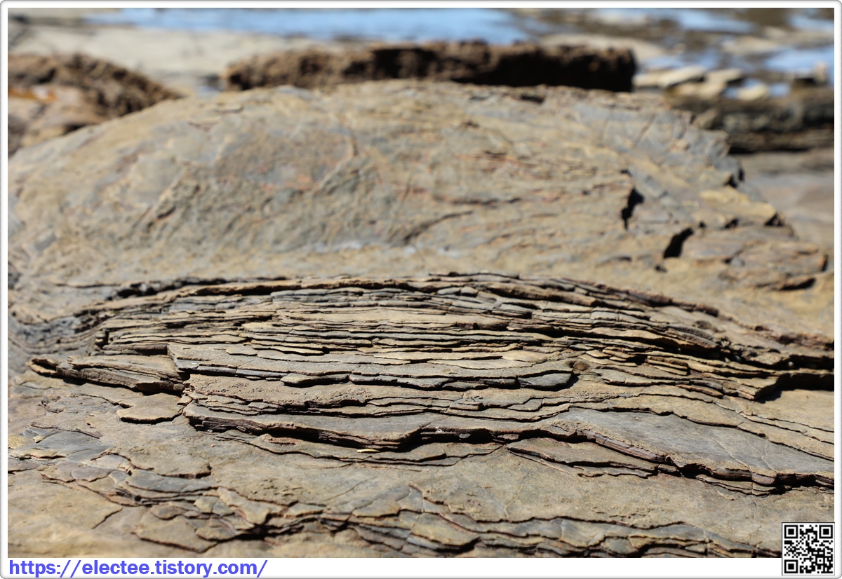 햇빛에 드러난 암반도 자세히 보면 여러 층으로 되어 있다.