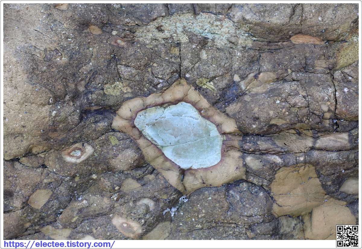 사암층 내에는 렌즈형태로 협재 된 역암이 곳곳에서 확인되며,