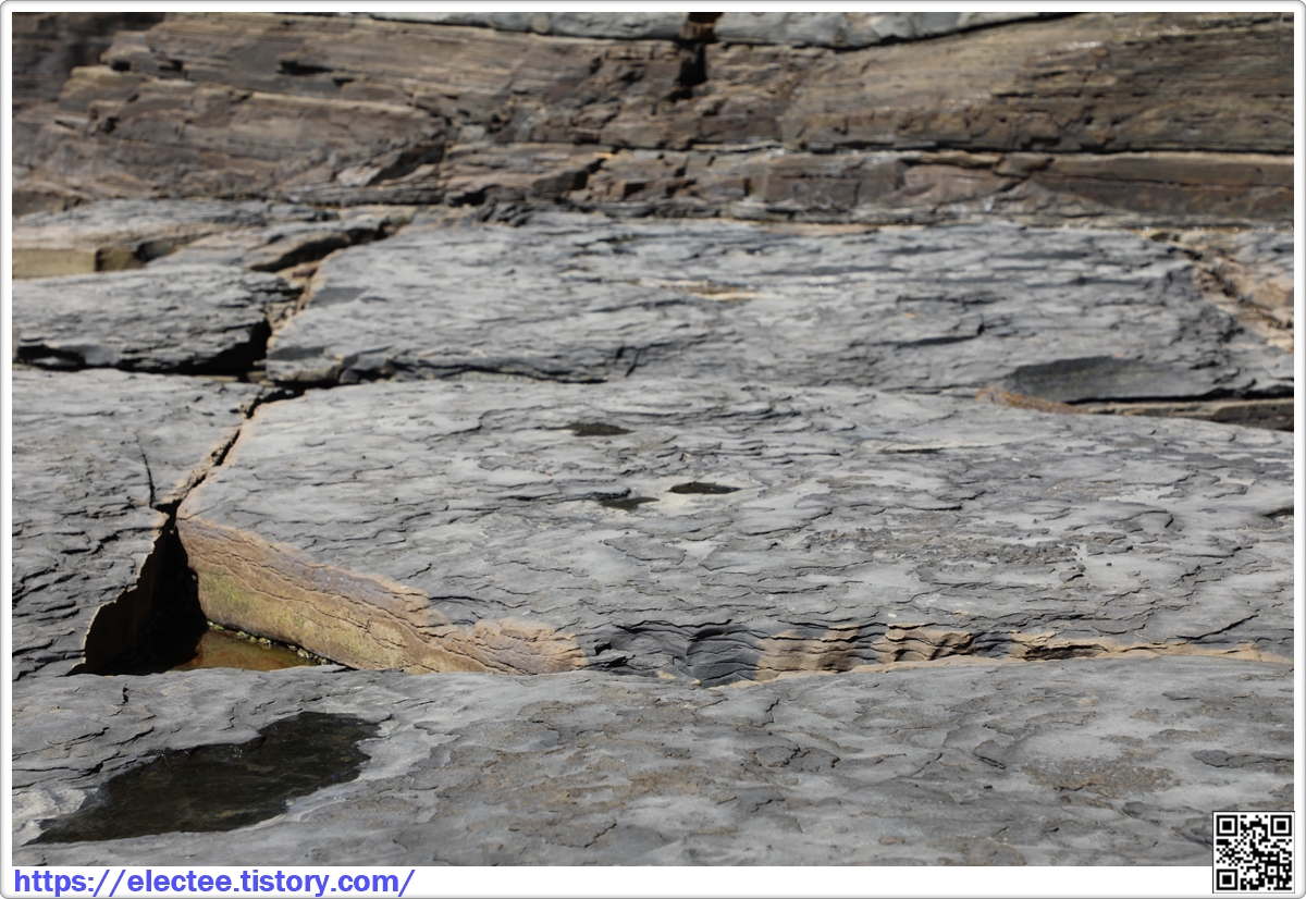 이러한 격포리층 내에는 정단층이 잘 발달되어 있으며, 하부 쥐라기 흑운모화강암과의 부정합면을 관찰할 수 있다.