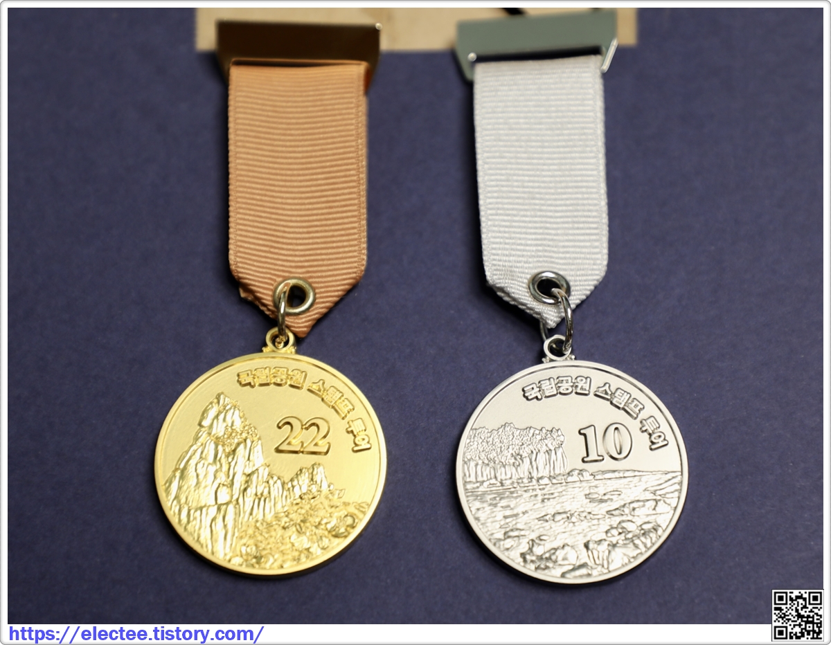 22개를 완주한 메달은 금빛 찬란하고, 10개를 완주한 건 은색 메달이다.