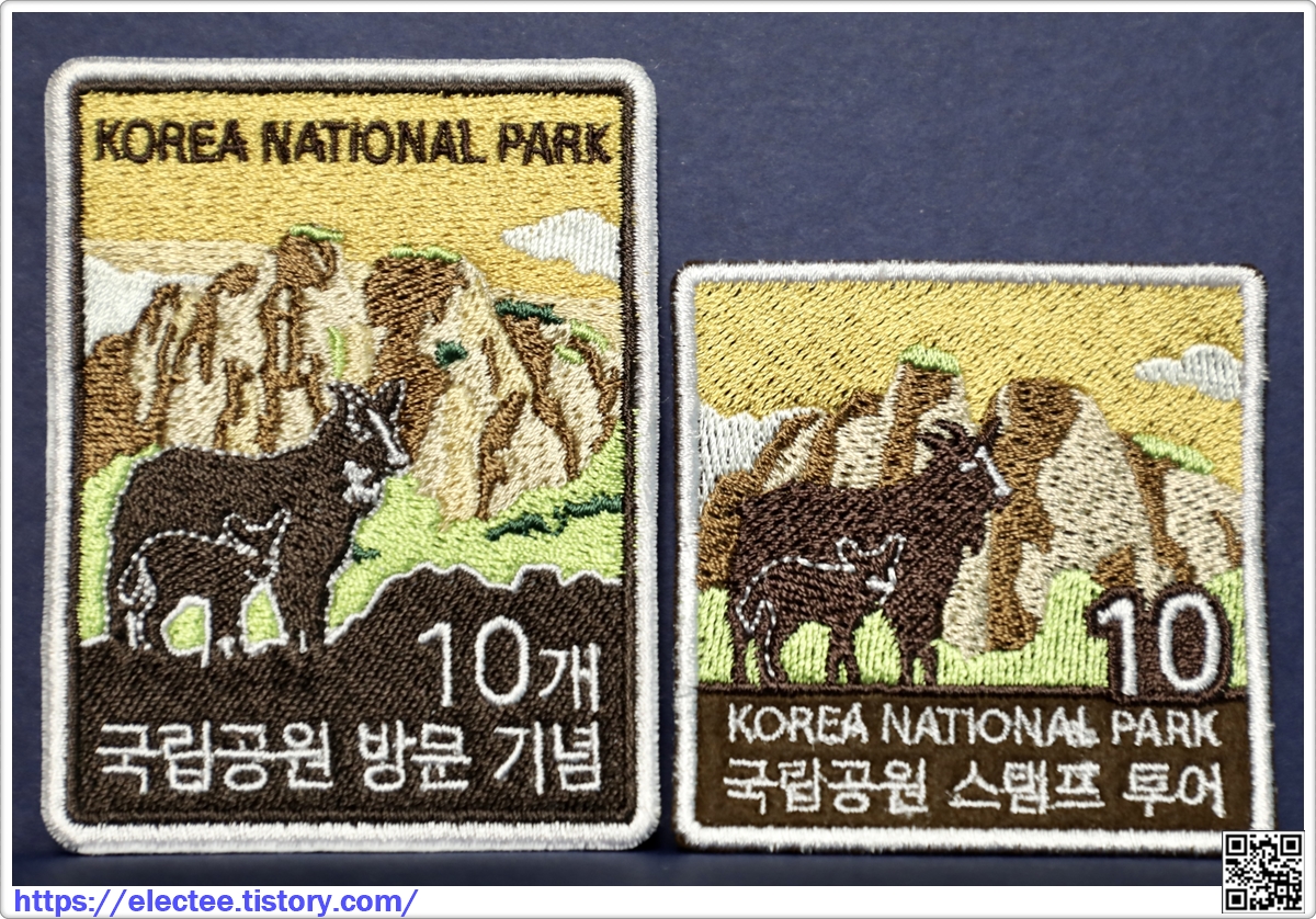 처음 10개 국립공원 인증을 끝내고 받은 왼쪽 자수패치는 오늘 목우가 받은 것보다 훨씬 크다.