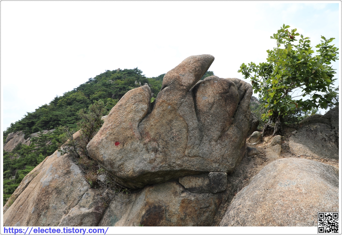 지금 보니 누군가 바위라 토끼처럼 보였는지 빨간 토끼 눈을 그려 놓았다.