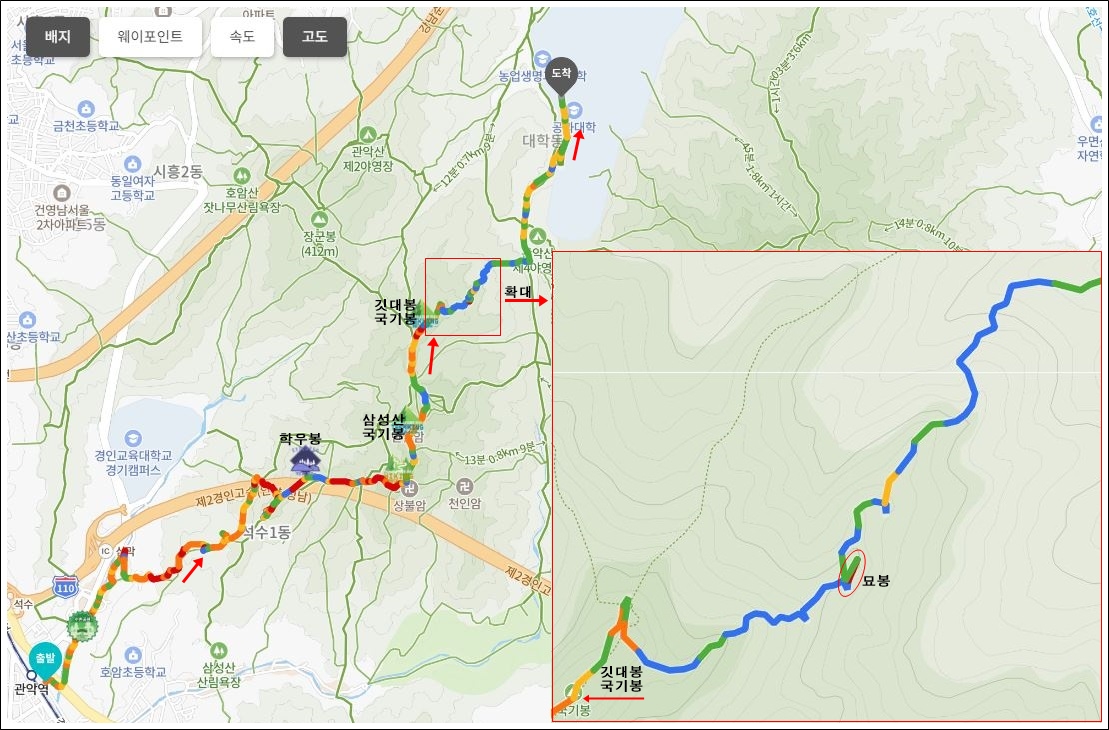 학우봉능선-삼성산-깃대봉-묘봉능선 코스