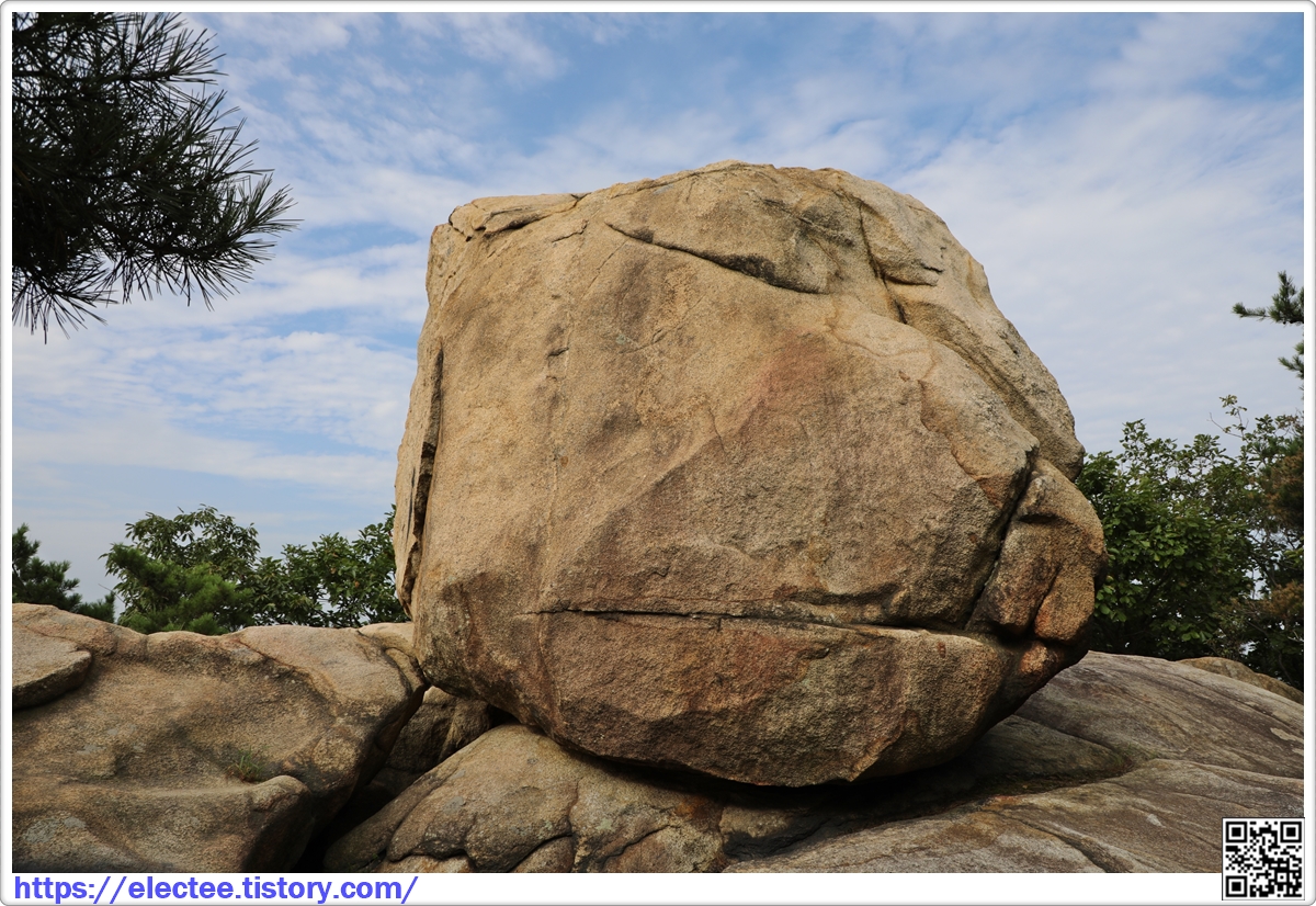 멀리서 봤을 땐 동그랗던 바위가 다소 넓적한 모양새다.