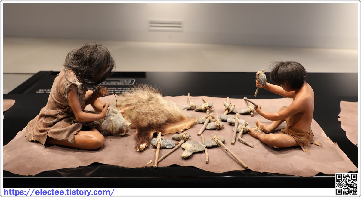 이 시대 사람들은 석기를 이용하여 동물을 사냥하고, 식물을 채집하면서 먹거리를 얻었다.