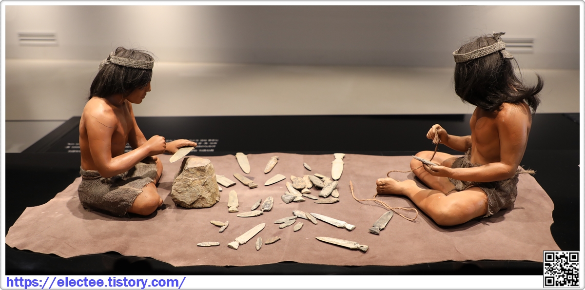 저렇게 칼을 만들기까지 며칠이고 돌을 갈자면 돌의 성질도 잘 알아야 했다.