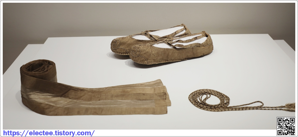 허리띠와 그 위에 거는 비단 끈장식, 천으로 만든 두건과 신을 함께 착용하고 있었는데,