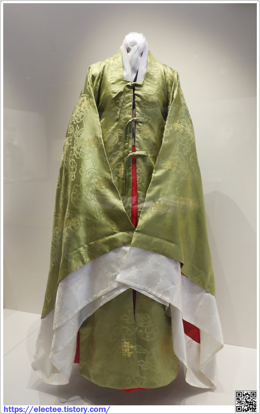 법도에 따라 상의는 6폭, 치마는 12폭을 연결해 만들었다.