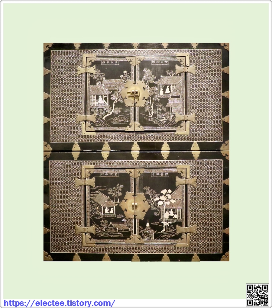 칠보자개로 만든 장롱은 주변의 다른 제품과 섞여 사진이 제대로 나타나지 않는다.