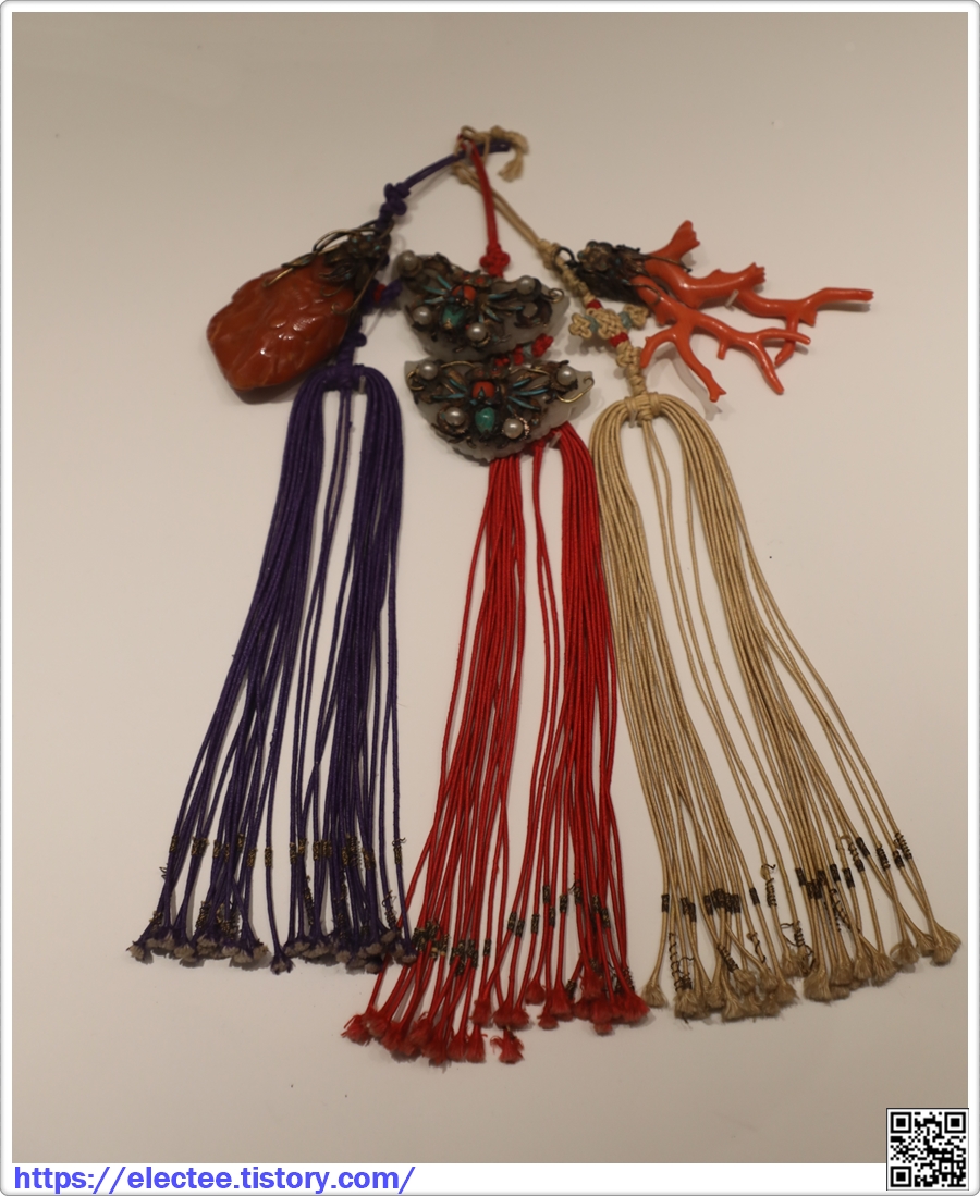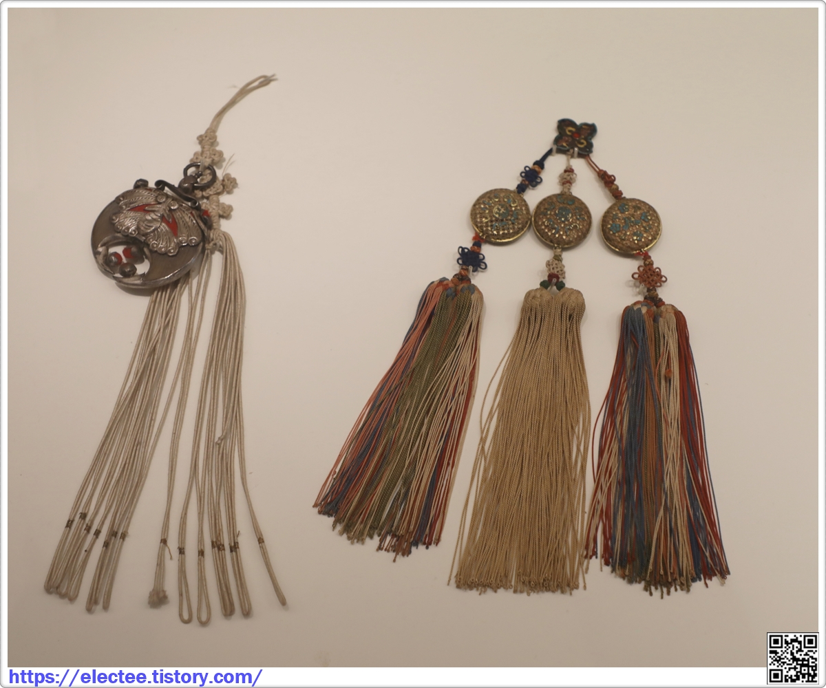 허리띠와 그 위에 거는 비단 끈장식, 천으로 만든 두건과 신을 함께 착용하고 있었는데,