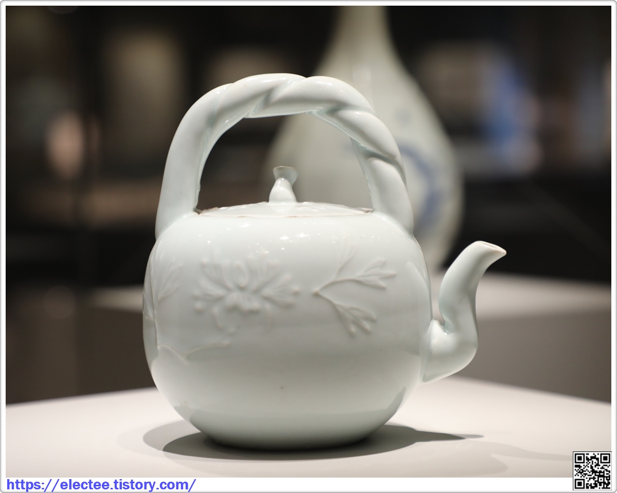 분원 말기의 기형으로, 형태도 의젓하고 청화문양과 조각장식도 솜씨가 뛰어나다. (안내문)