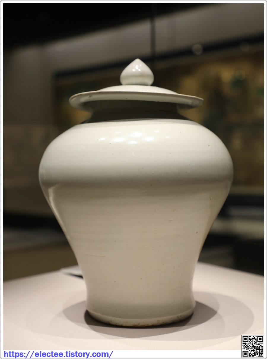보주형의 꼭지와 날렵한 모양의 뚜껑을 갖춘 항아리이다.