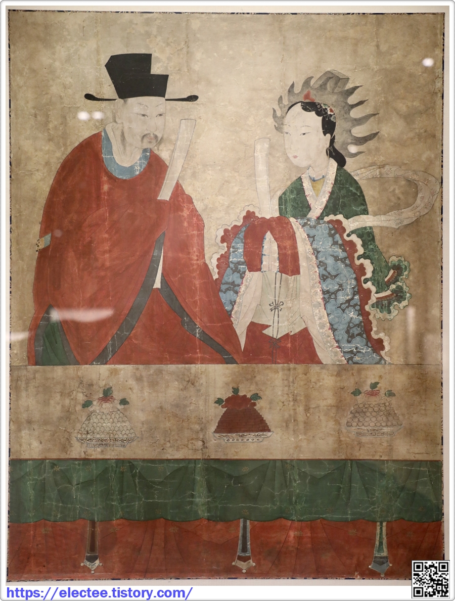 공민왕과 노국대장공주가 서로 마주 보듯 앉아 있다.