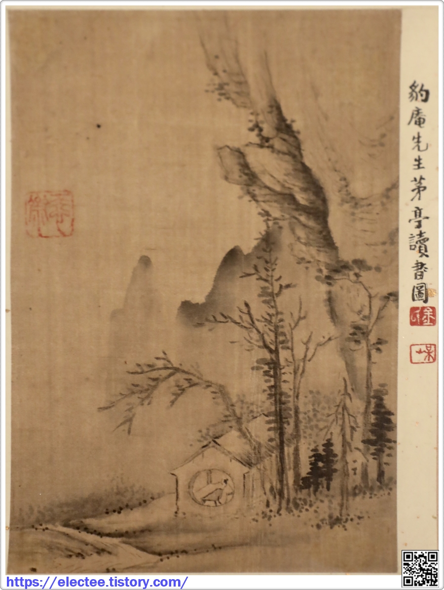 그림의 가장 왼쪽 폭 하단에 그려진 도장에 숨기듯이 그의 이름을 적어 놓았다.