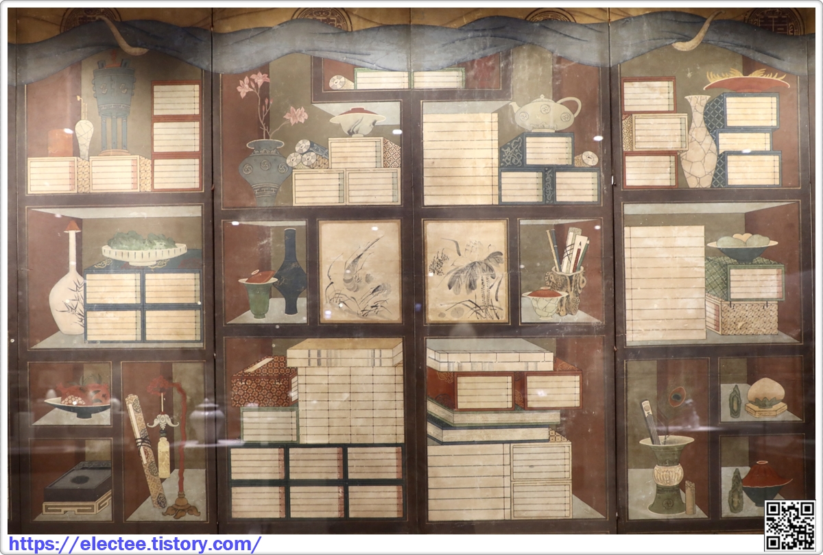 전해지는 책거리 병풍 중 가장 이른 시기에 제작된 것으로 보인다.