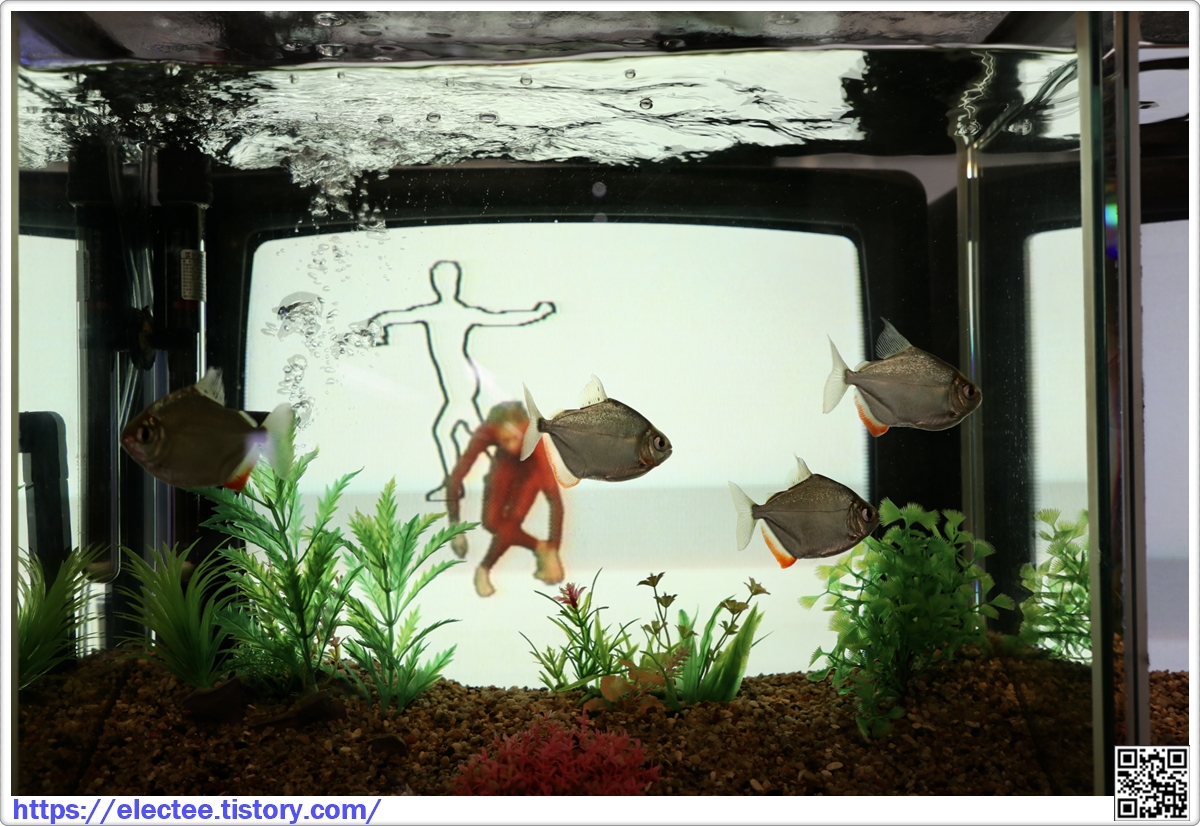 텔레비전 케이스 안에는 폐쇄회로 카메라가 오르골 연주를 실시간 촬영하여 텔레비전 화면에서 비춰준다.
