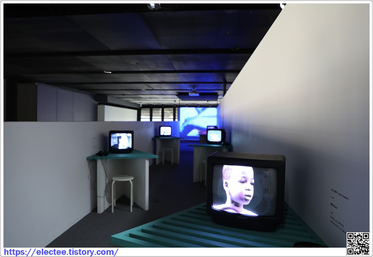 화면을 보며 이어폰으로 그의 작품을 감상하는 곳도 두세 군데 마련되어 있다.