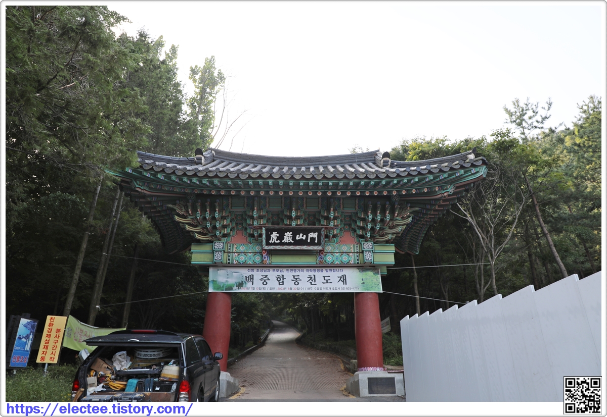호압사로 들어가는 일주문 앞에는 높은 휀스를 치고 공사 중이다.
