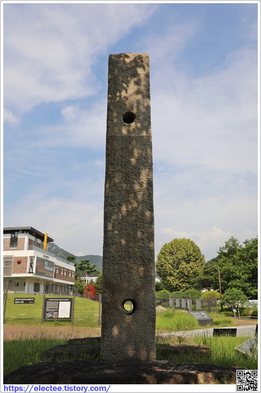 그것도 흔하디 흔한 석재 당간지주가 뭐 볼 게 있겠냐마는 신라시대 당간지주 중에서 지주 표면에 새겨진