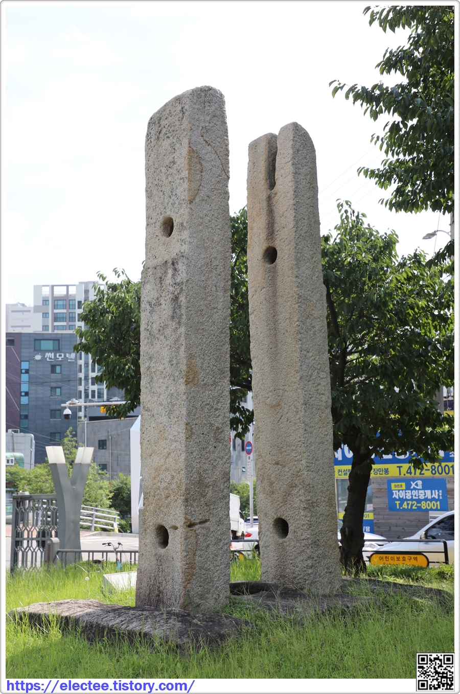 깃대를 거는 목재나 대나무는 세월이 흐름에 따라 사라졌고 지금은 석재만 남았다.