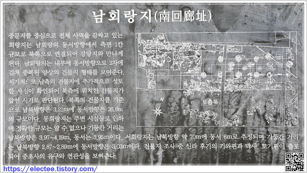 아래 설명의 안내문 오른쪽 그림에서 둥근 동그라미가 남은 주춧돌로 제법 큰 회랑란 걸 유추했다.