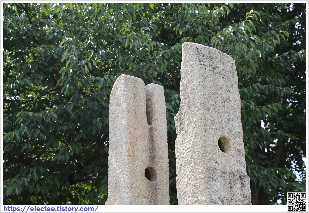 이 구멍은 당간지주 사이를 지나는 나무 사이로 고정하는 물체를 관통시켜 고정핀 역할을 할 것이다.